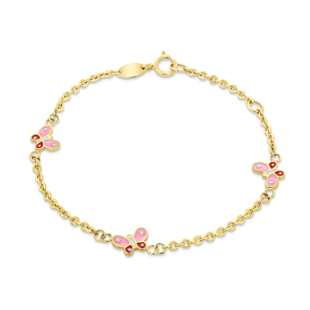 Brățară din aur galben de 14K, reglabilă cu elemente tip fluture și Email.
