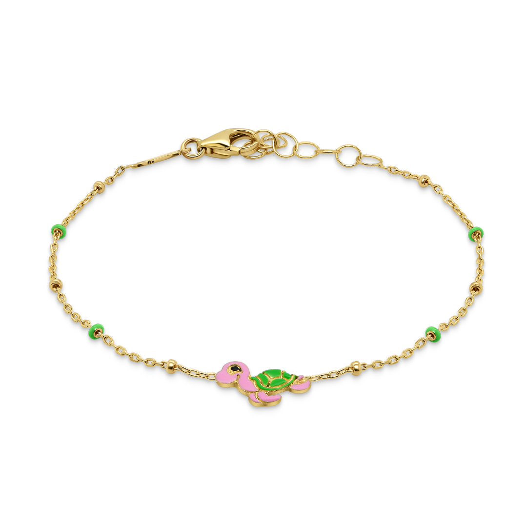 Brățară din aur galben de 14K, cu Email colorat şi pandantiv în formă de broscuţă.