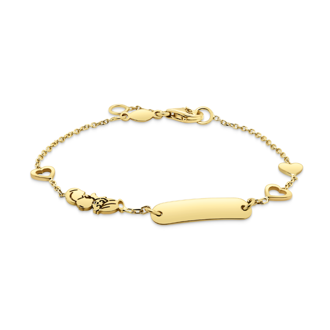 Brățară cu plăcuță pentru copii din aur galben de 14K.