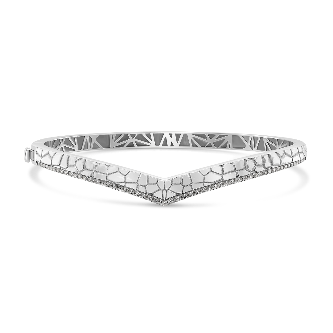 Brățară fixă din aur alb de 14K cu zirconii incolore.
