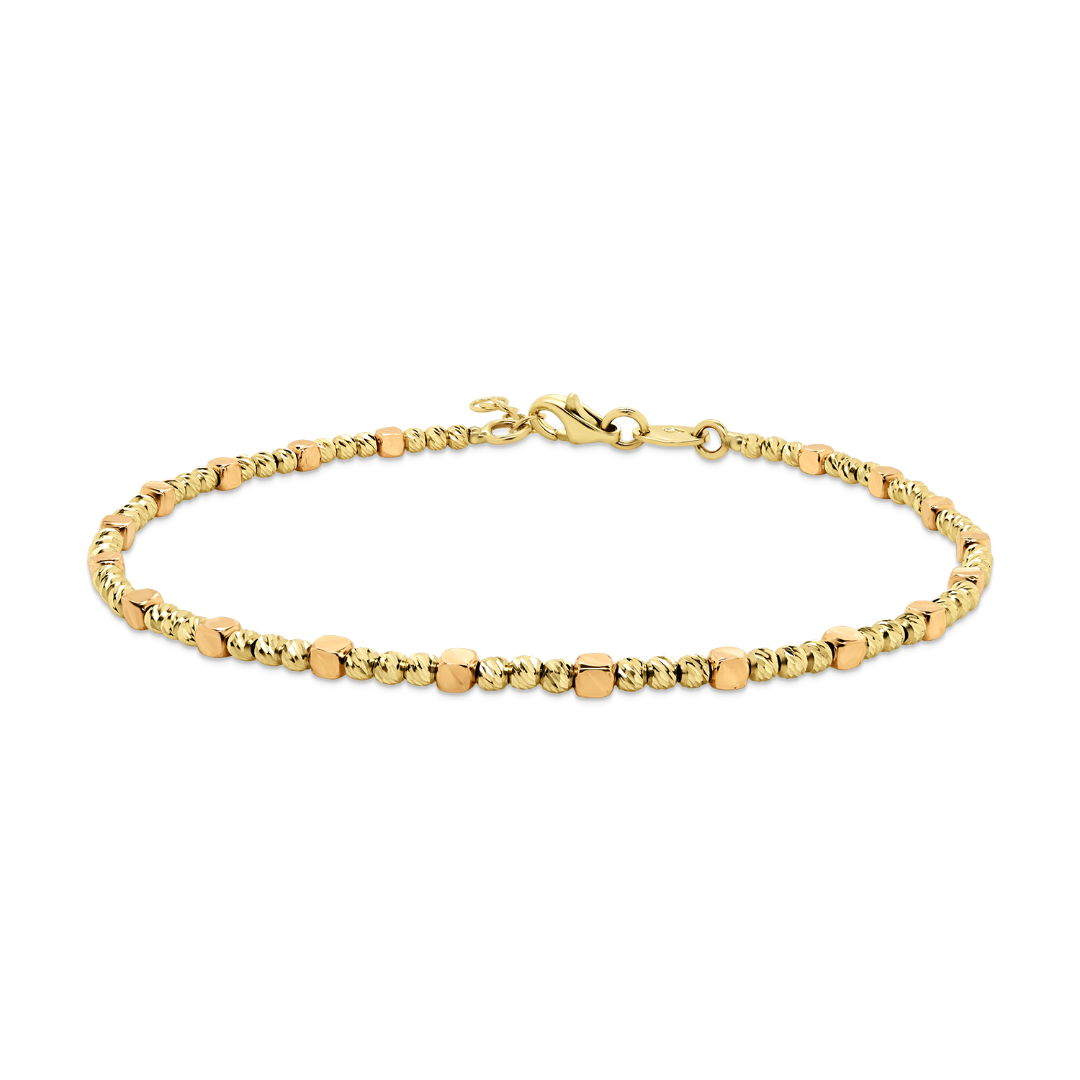 Brățară fixă din aur galben de 14K cu elemente tip cub din aur roz.