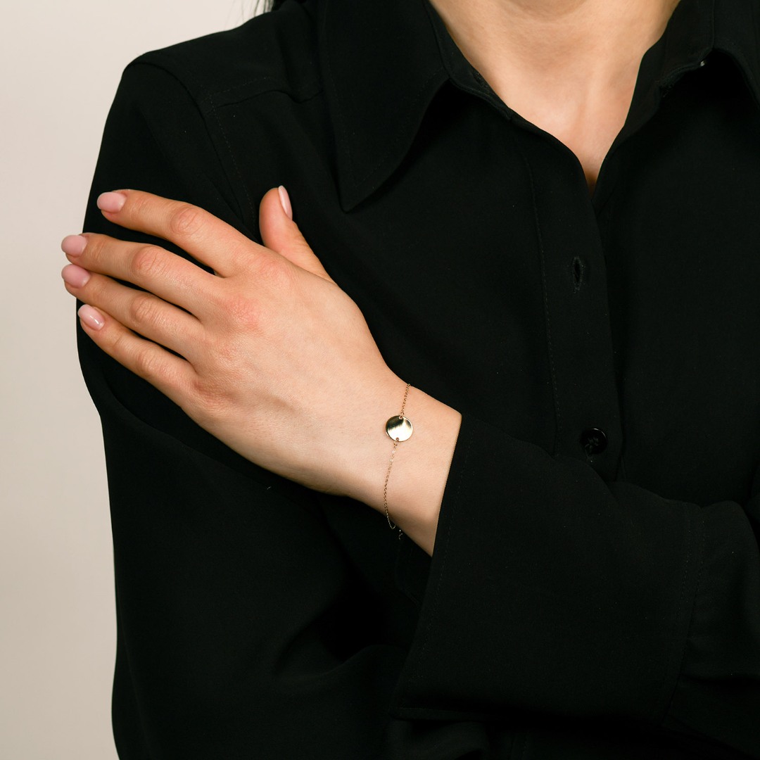 Alege cadoul perfect ce poate fi personalizat cu nume, simboluri sau detalii reprezentative. Brățară reglabilă din aur galben de 14K.