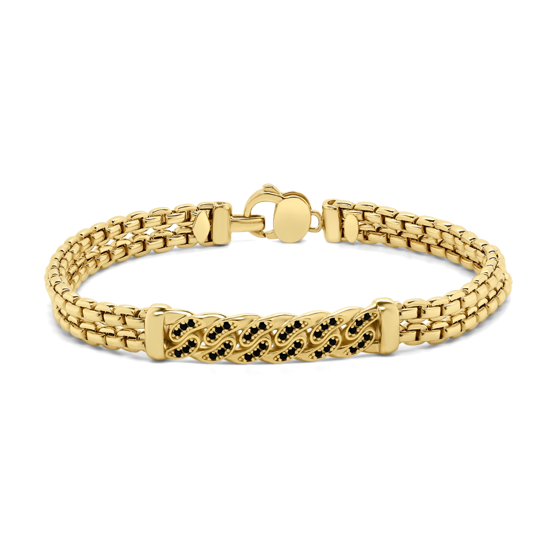 Brățară din aur galben de 14K și element cu pietre Cubic Zirconia negre.