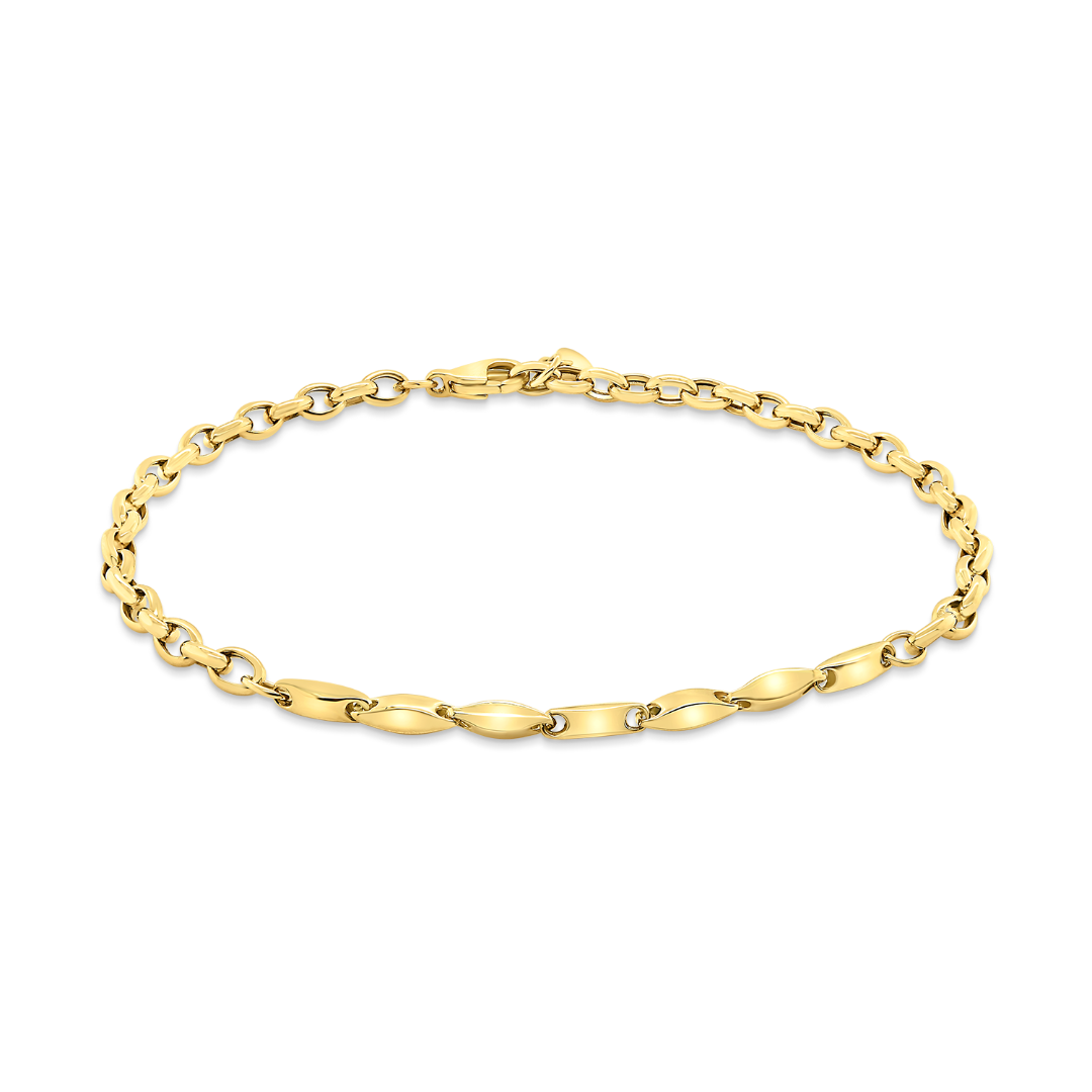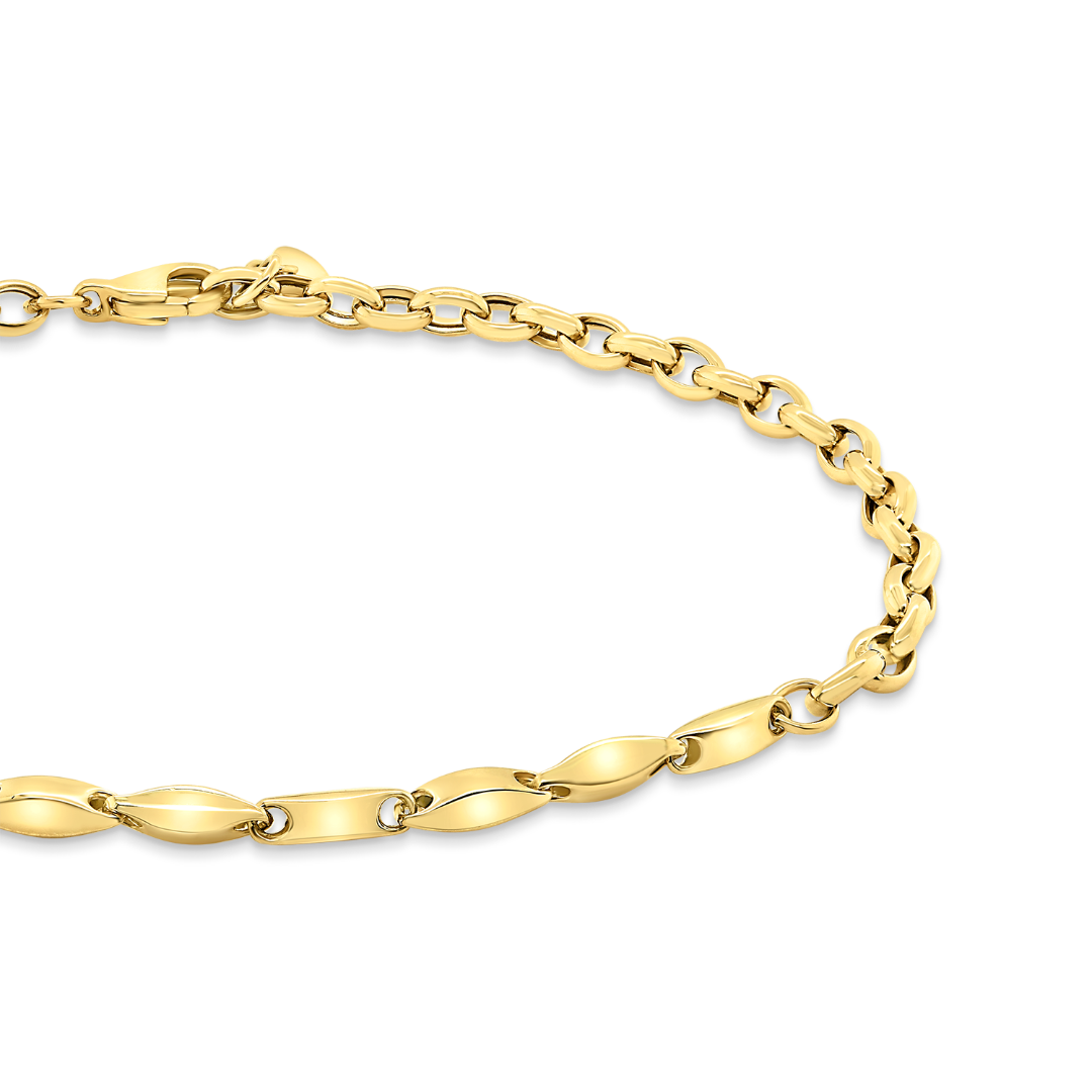 Brățară din aur galben de 14K cu diferite tipuri de zale.