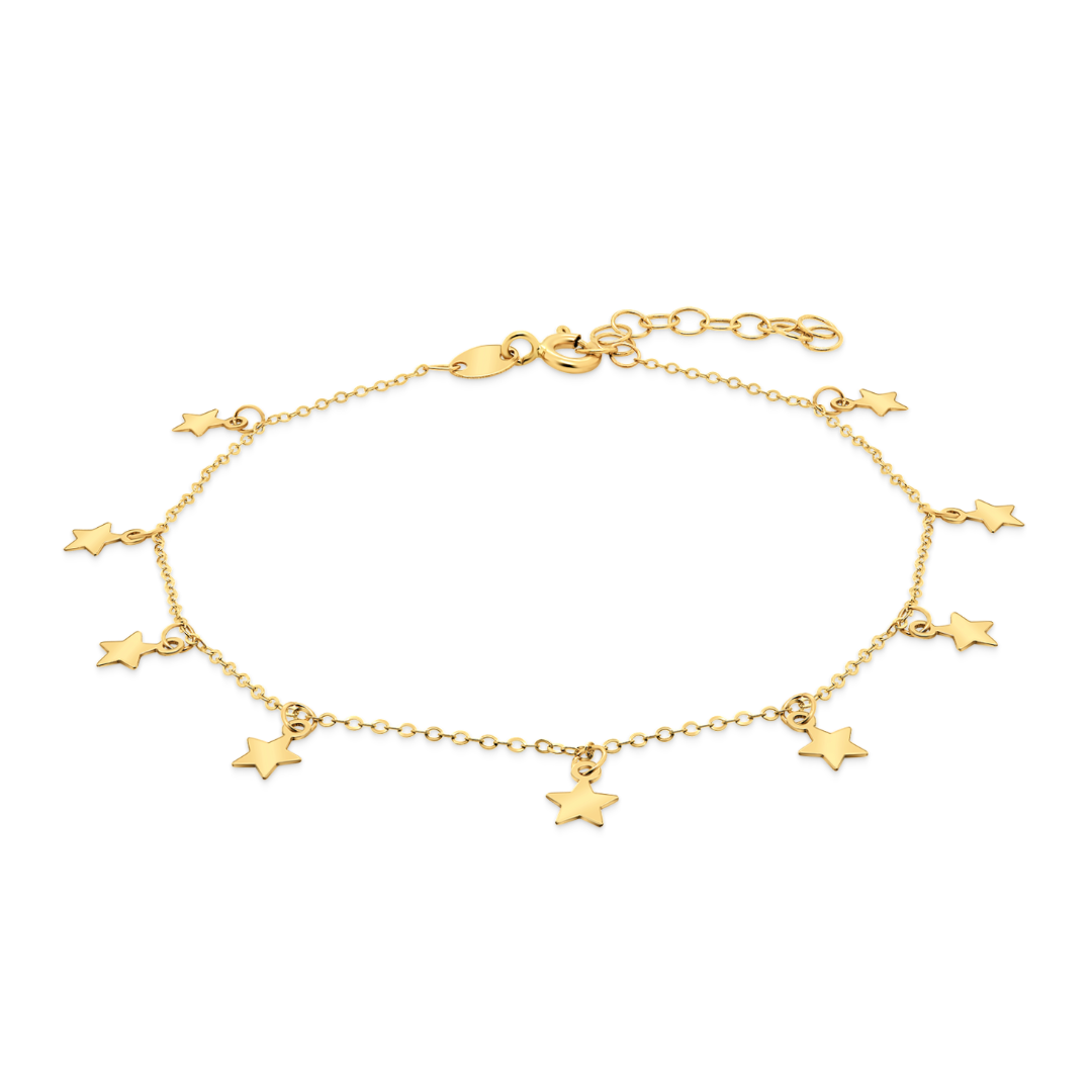 Brățară din aur galben de 14K cu pandantive în formă de stea.