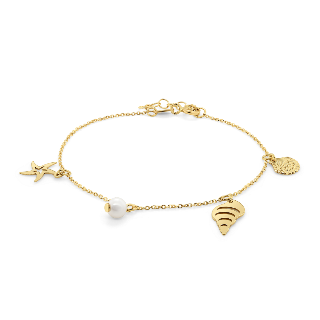 Brățară cu pandative din aur galben de 14K și Perlă de cultură.