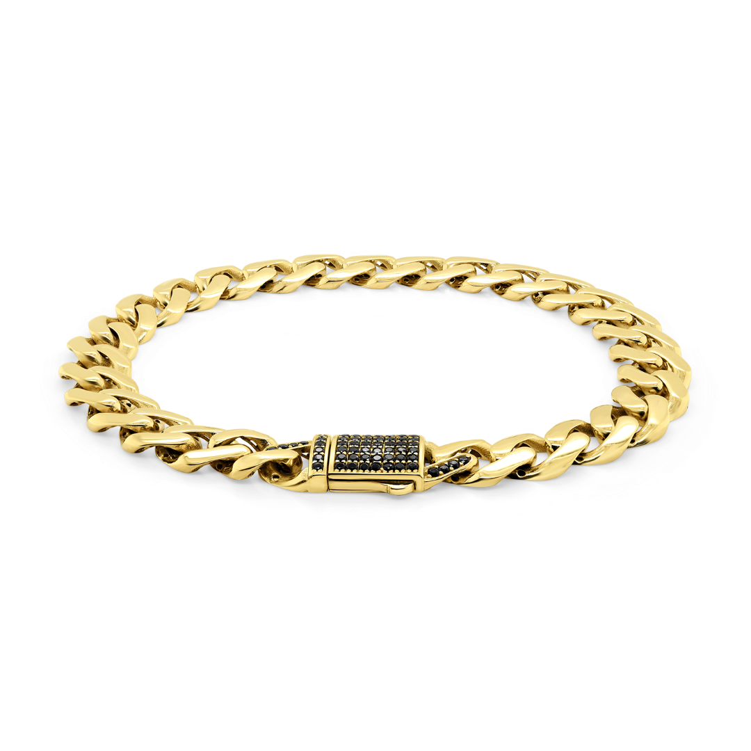 Brățară din aur galben de 14K cu pietre cubic zirconia negre.