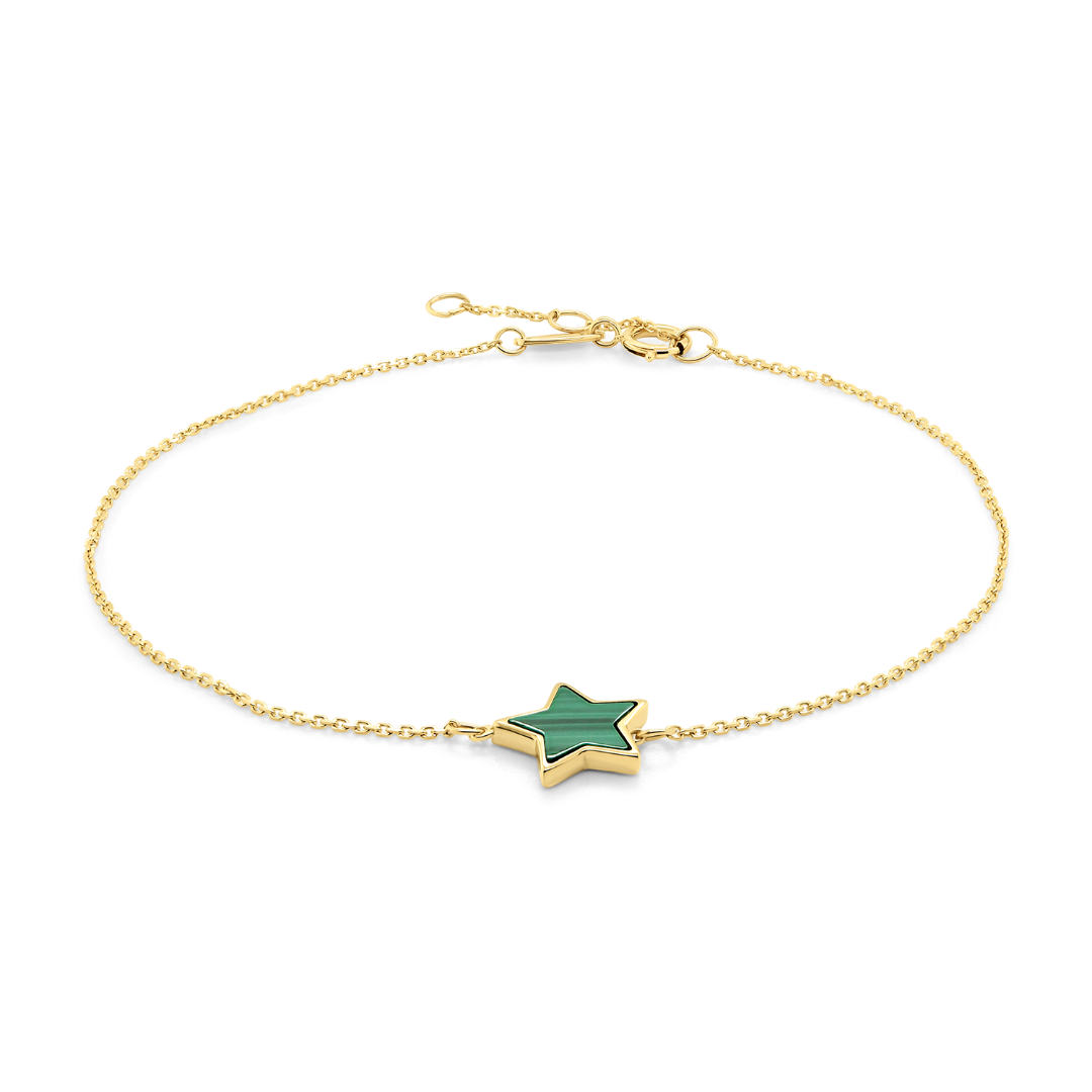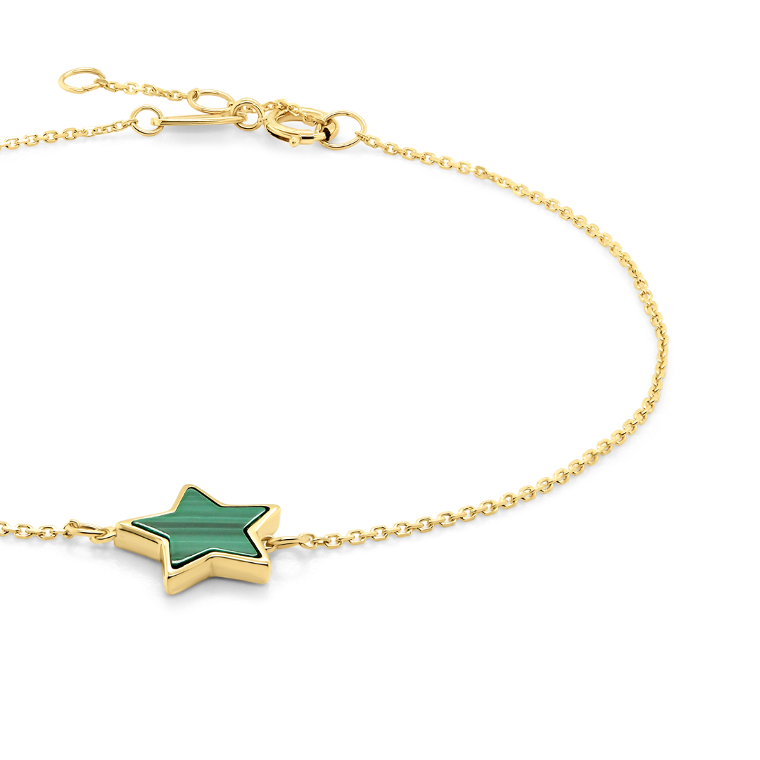 Brățară din aur galben de 14K cu element stea din Malachit.