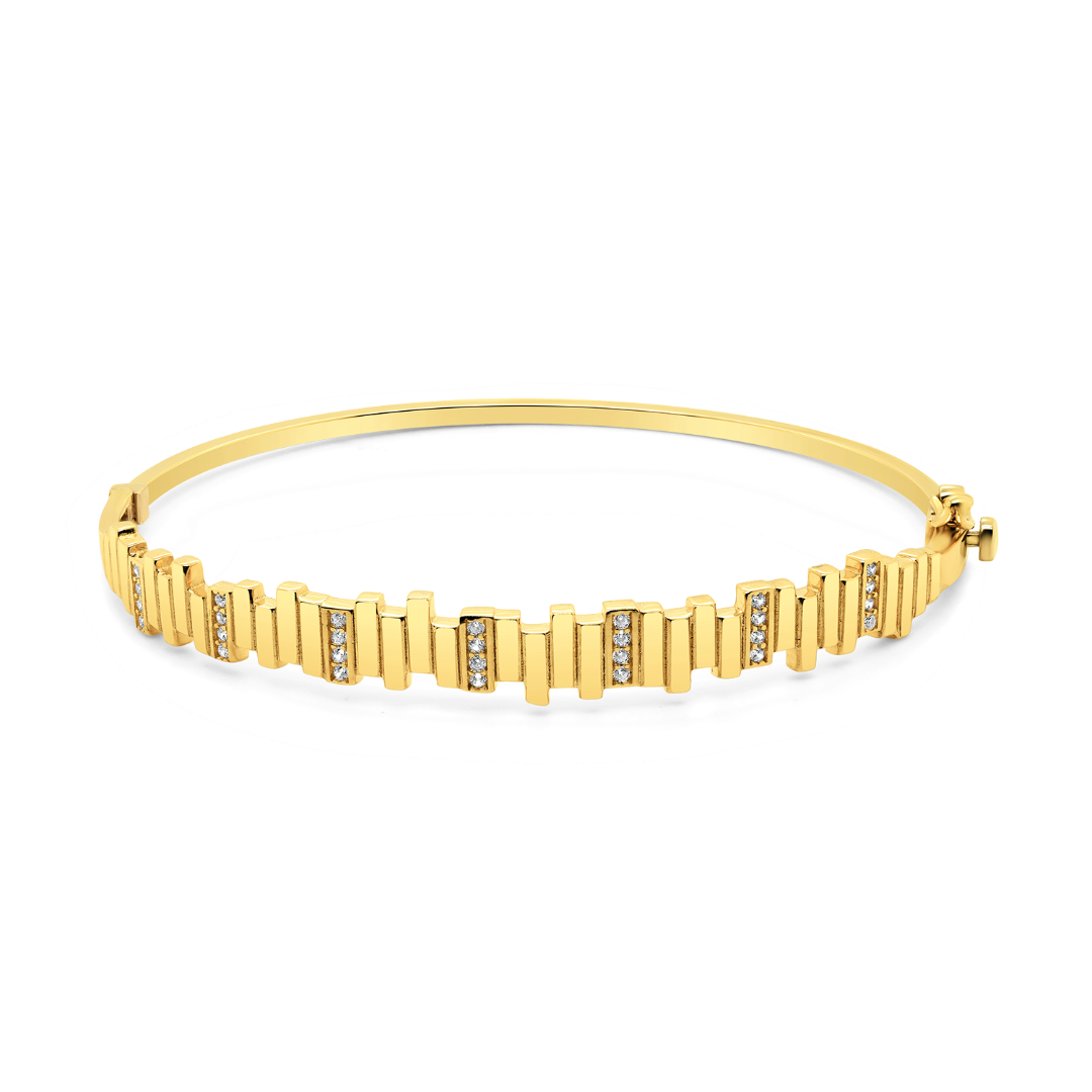Brățară fixă din aur galben de 14K, cu pietre Cubic Zirconia albe.