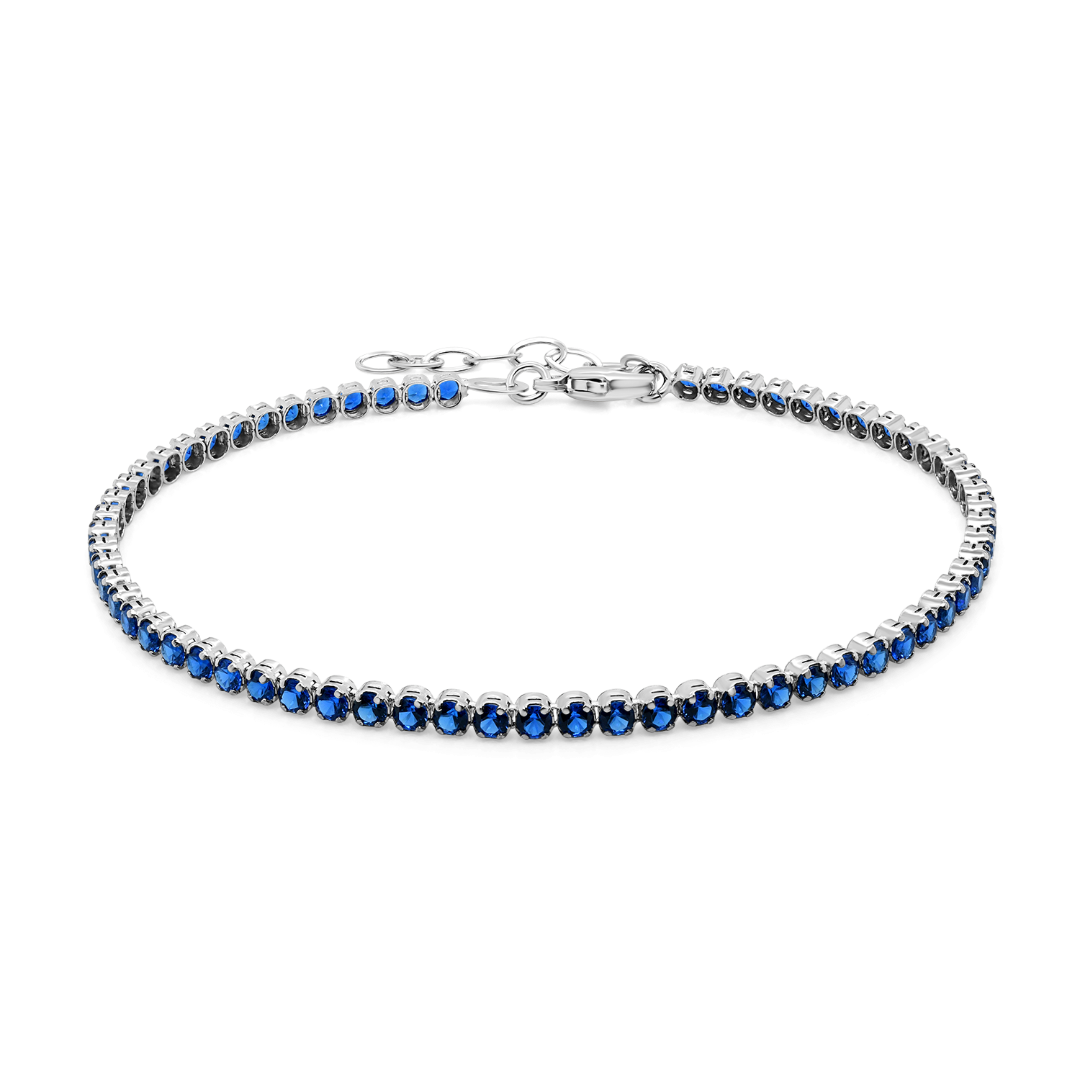 Brățară Tennis din aur alb de 14K cu pietre cubic zirconia albastre.