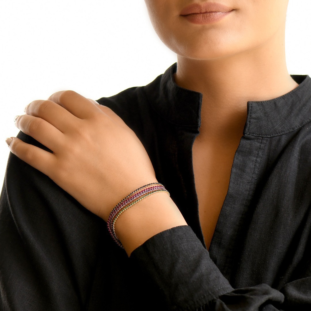 Brățară tennis din aur galben de 14K cu zirconia colorate.