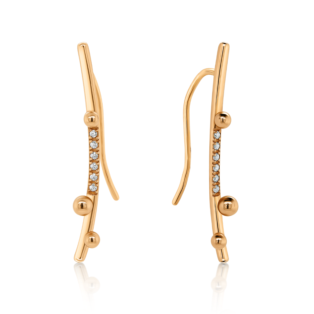 Cercei din aur roz de 14K, cu biluțe și pietre Cubic Zirconia albe.