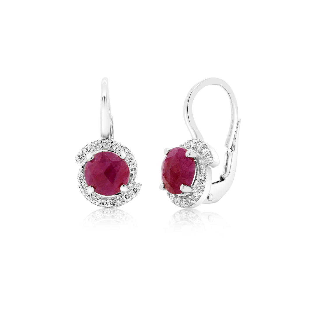 Cercei din aur alb de 14K și Corindon rosu