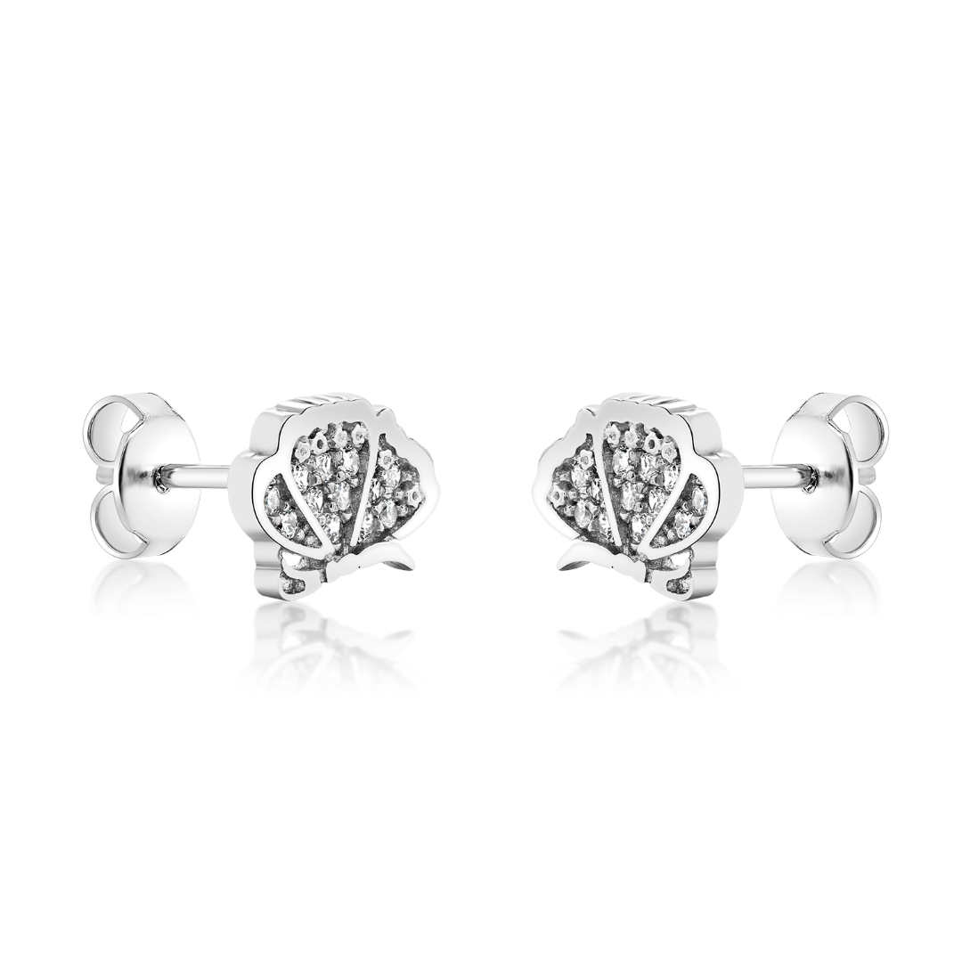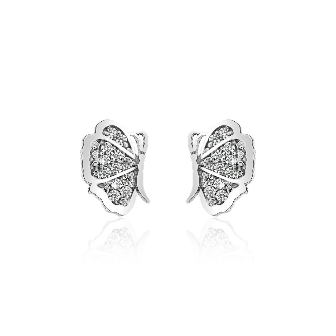 Cercei din aur alb 14K fluturaș cu pietre Cubic Zirconia albe.