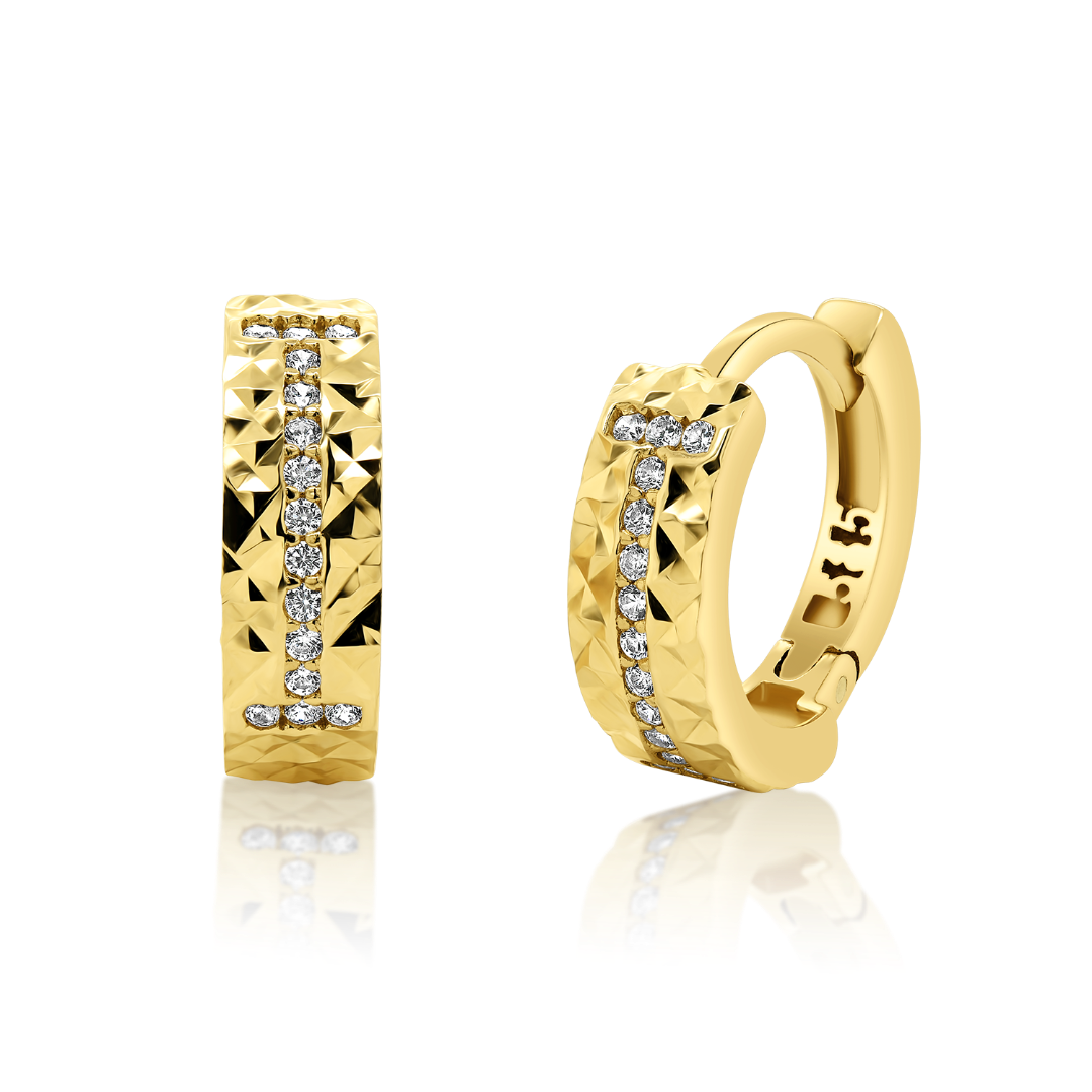 Cercei din aur de 14K cu pietre Cubic Zirconia albe.