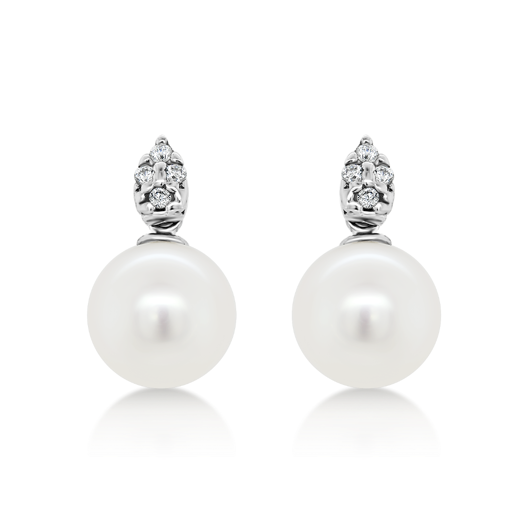 Cercei din aur alb de 14K cu Perle și pietre Cubic Zirconia albe.