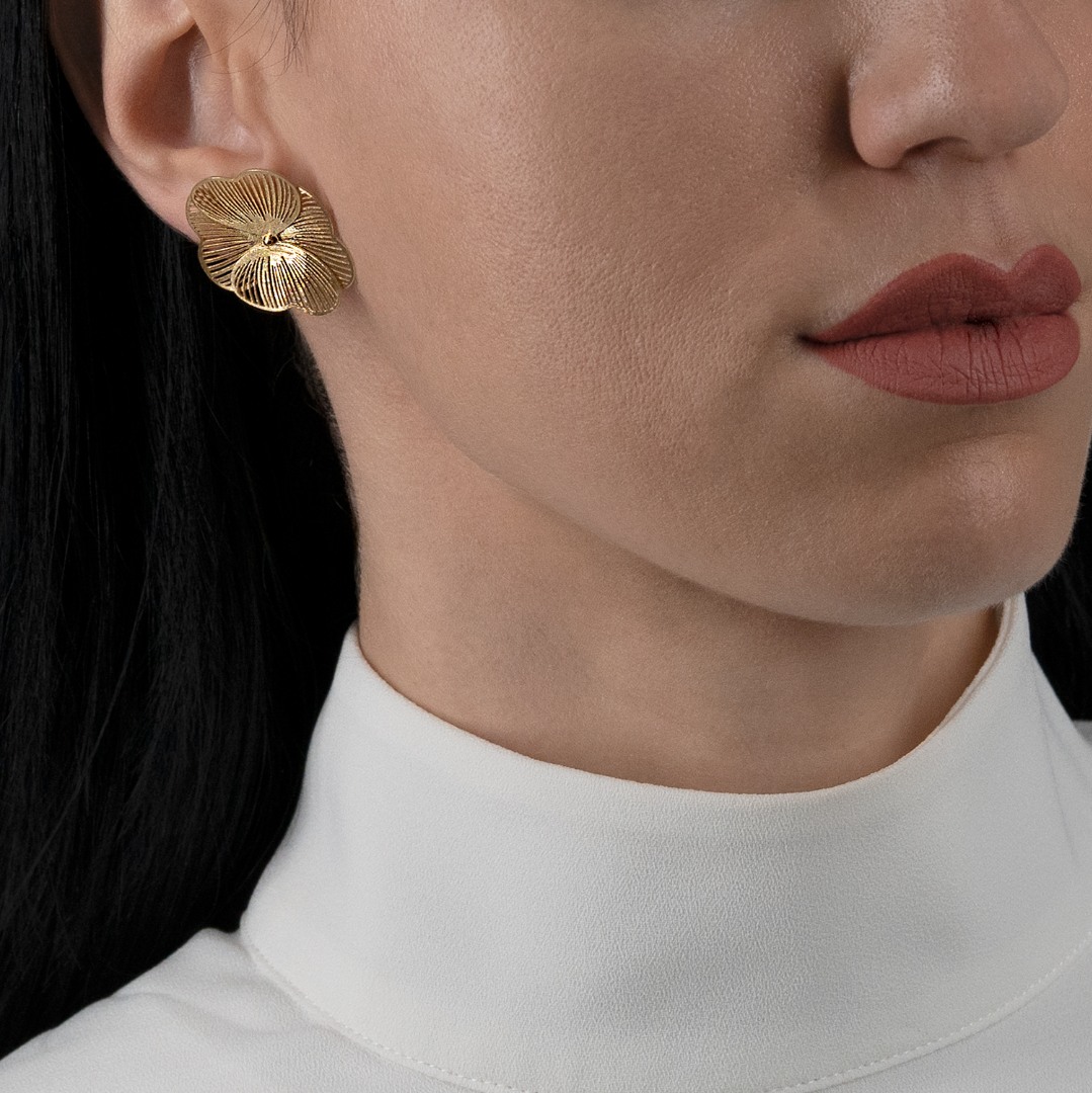 Cercei cu efect satinat din aur galben de 14K.
