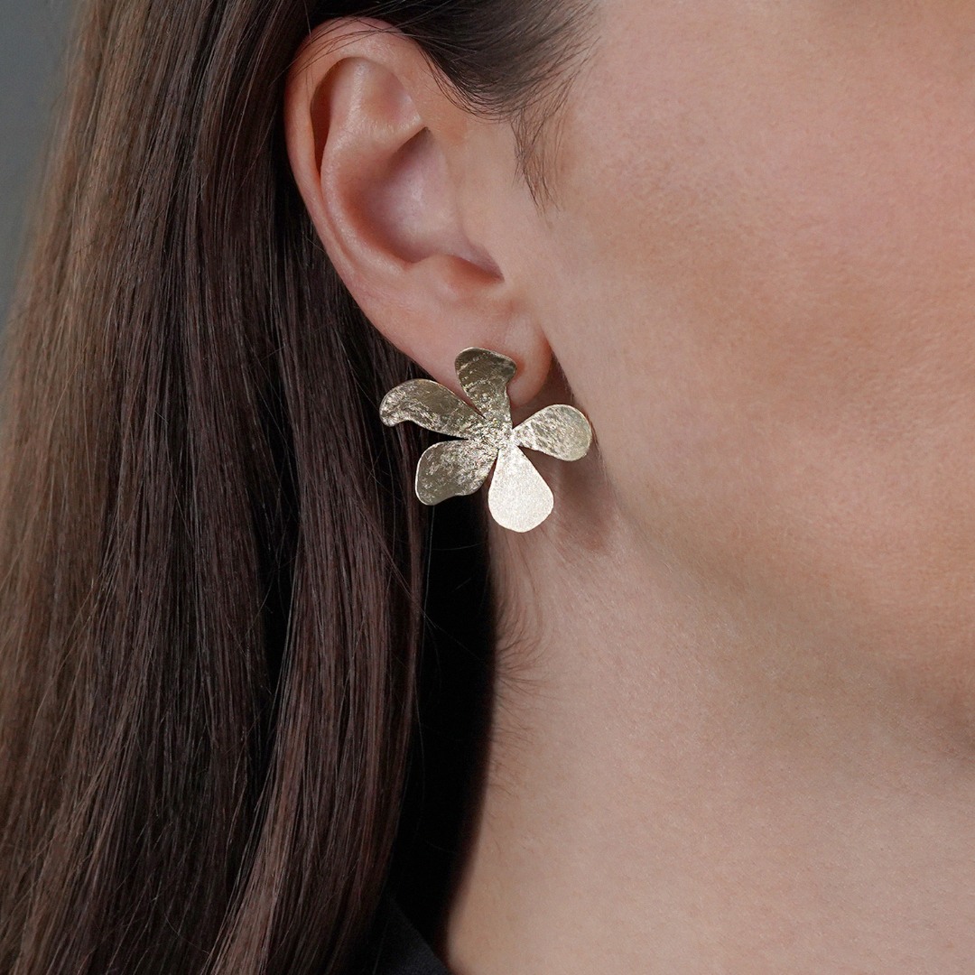 Cercei în formă de floare cu efect satinat din aur galben de 14K.