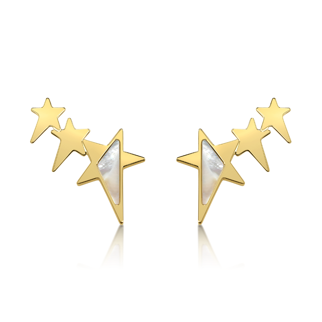 Cercei cu steluțe din aur galben de 14K și Sidef.