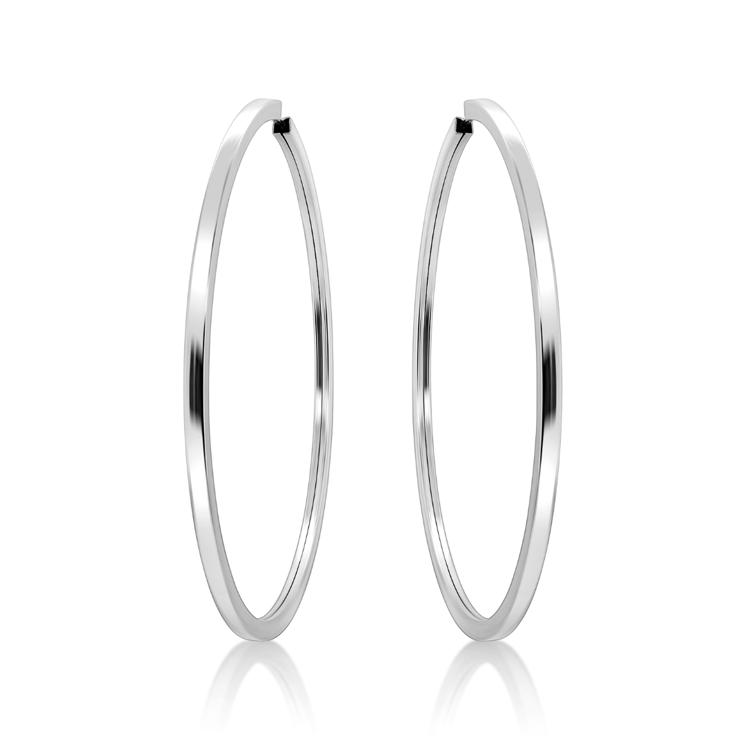 Cercei rotunzi din aur alb de 14K tip tortiță