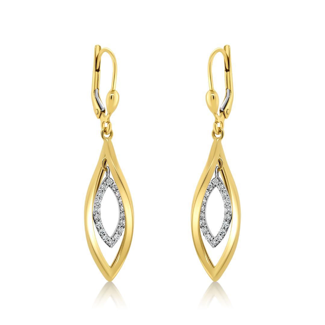 Cercei din aur galben de 14K cu pietre Cubic Zirconia albe.