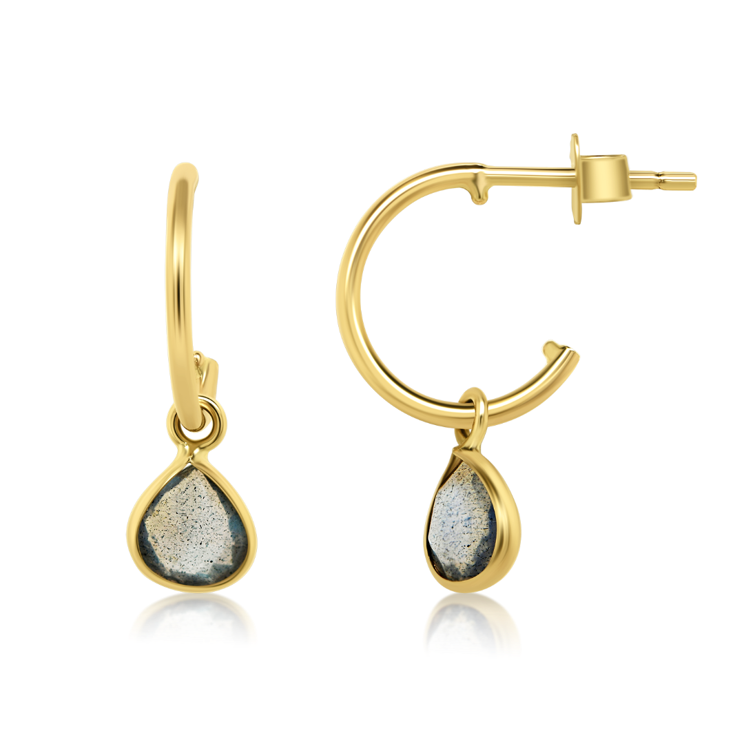 Cercei din aur galben de 14K cu piatră Labradorit.