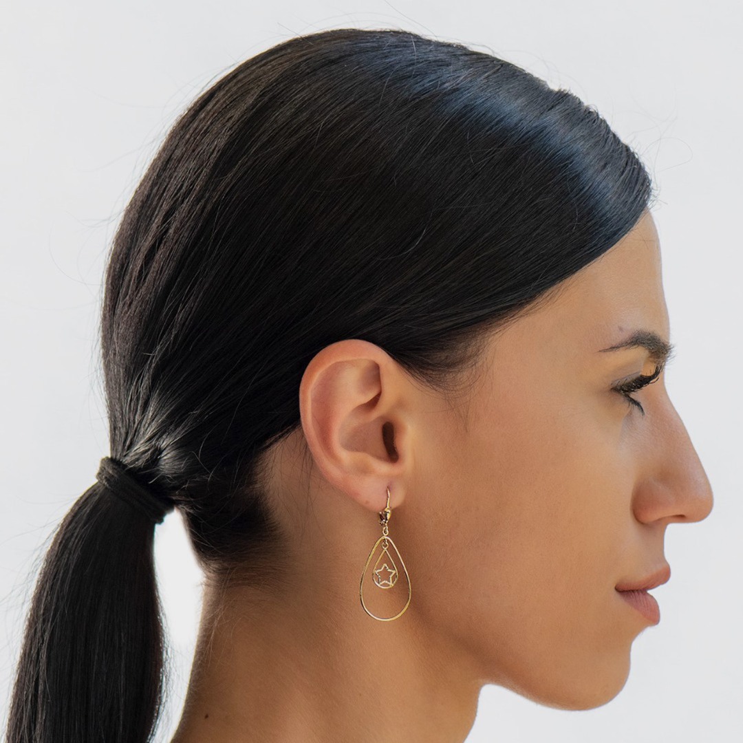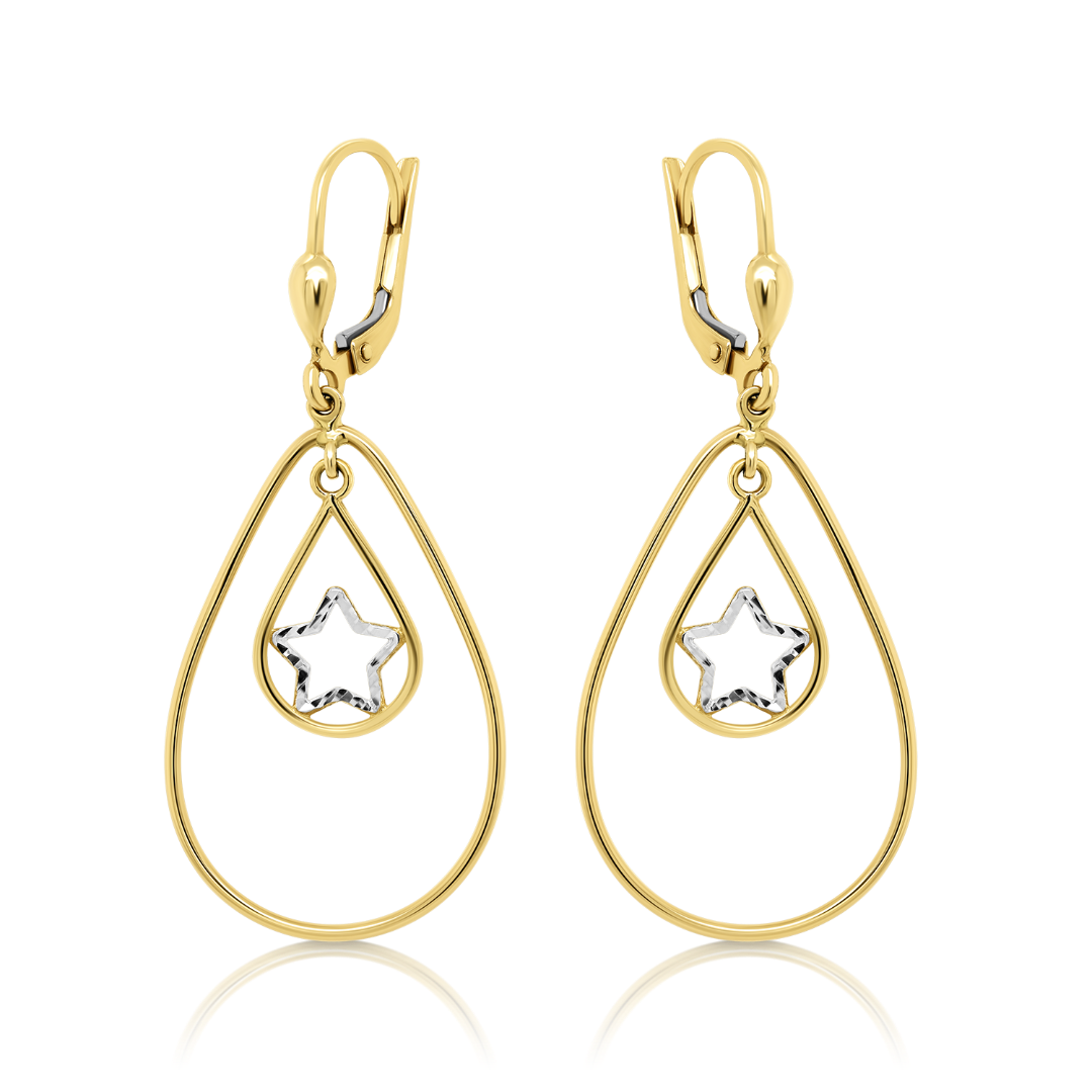 Cercei din aur galben de 14K cu elemente în formă de stea.
