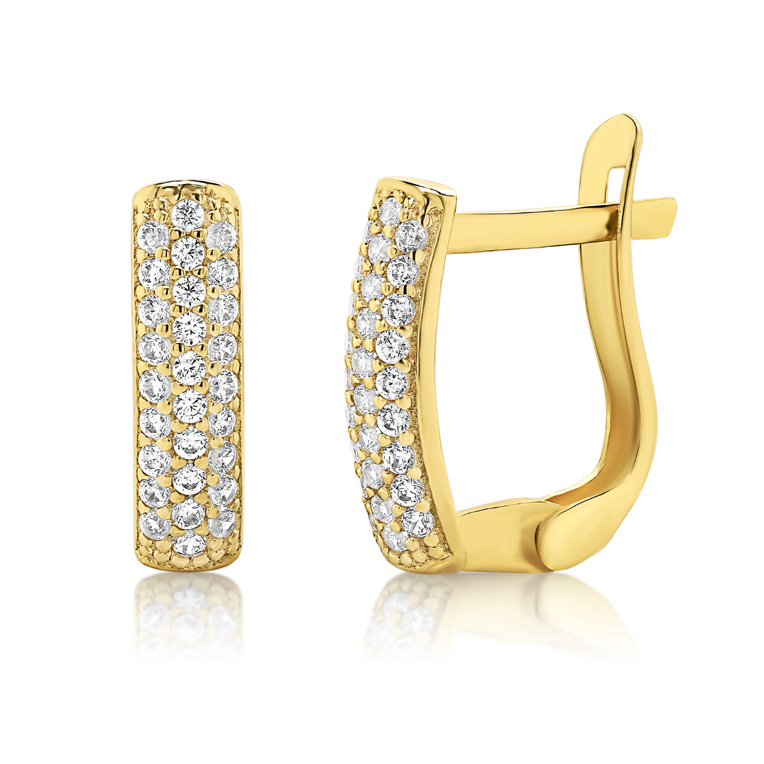 Cercei din aur galben de 14K cu pietre Cubic Zirconia.