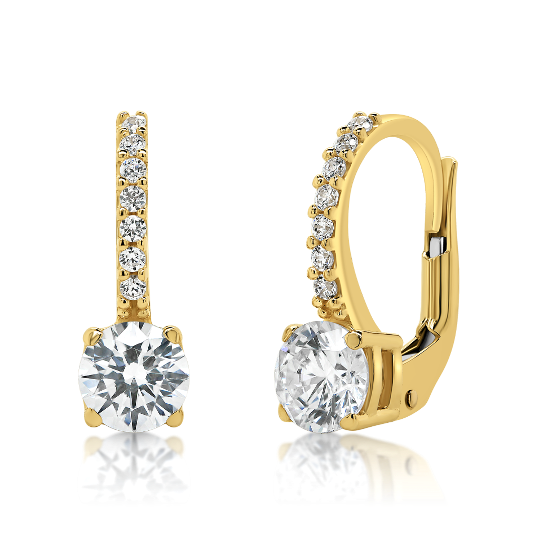 Cercei din aur galben de 14K cu pietre zirconia incolore.
