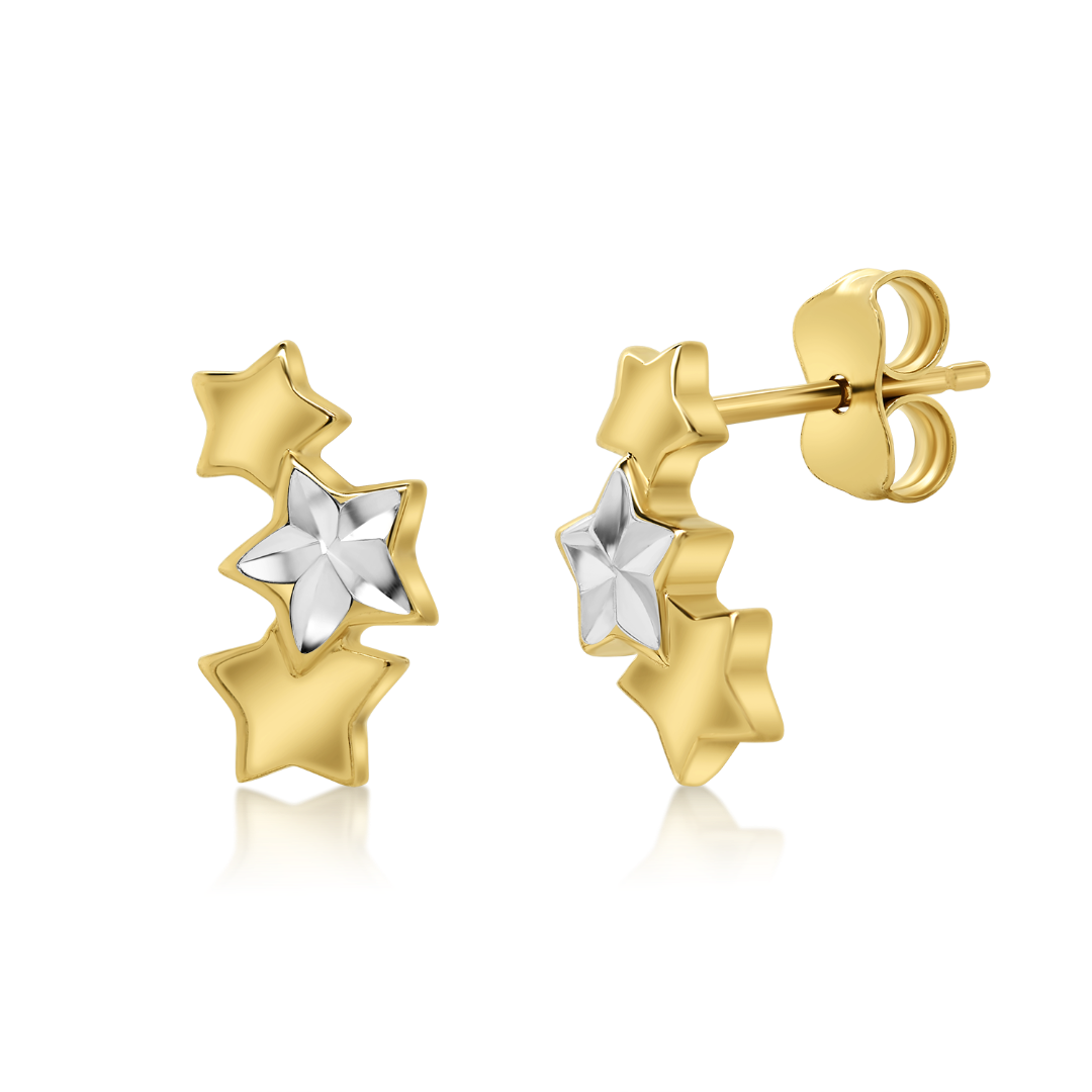 Cercei din aur galben de 14K cu elemente în formă de stea.