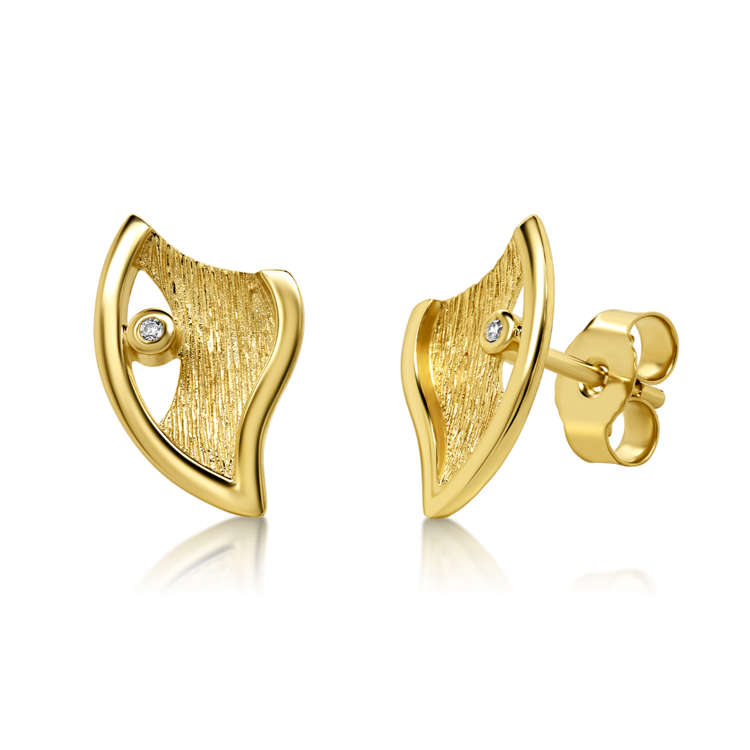 Cercei din aur galben de 14K cu pietre Cubic Zirconia albe.