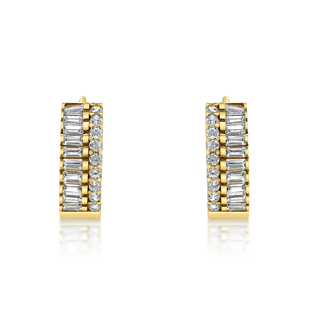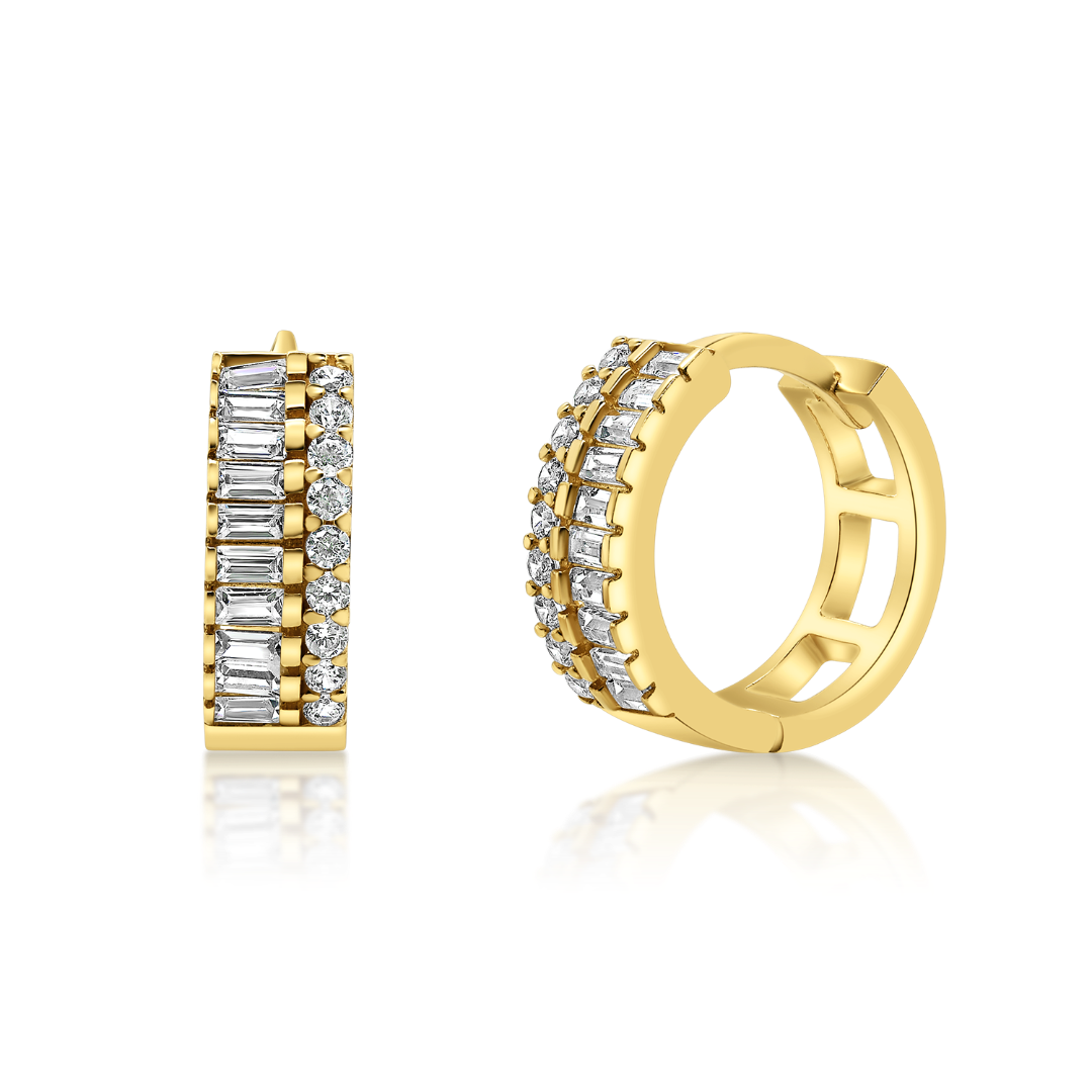 Cercei din aur galben de 14K încrustați cu pietre Cubic Zirconia albe.