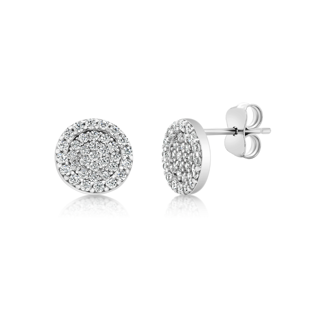 Cercei rotunzi din aur alb de 14K cu pietre Cubic Zirconia.