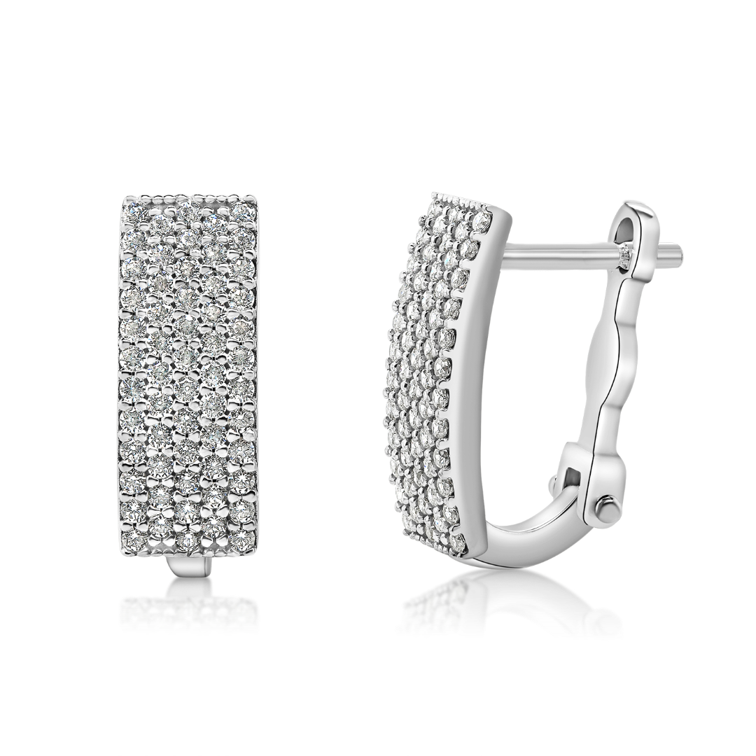 Cercei din aur alb de 14K, încrustați cu pietre Cubic Zirconia.