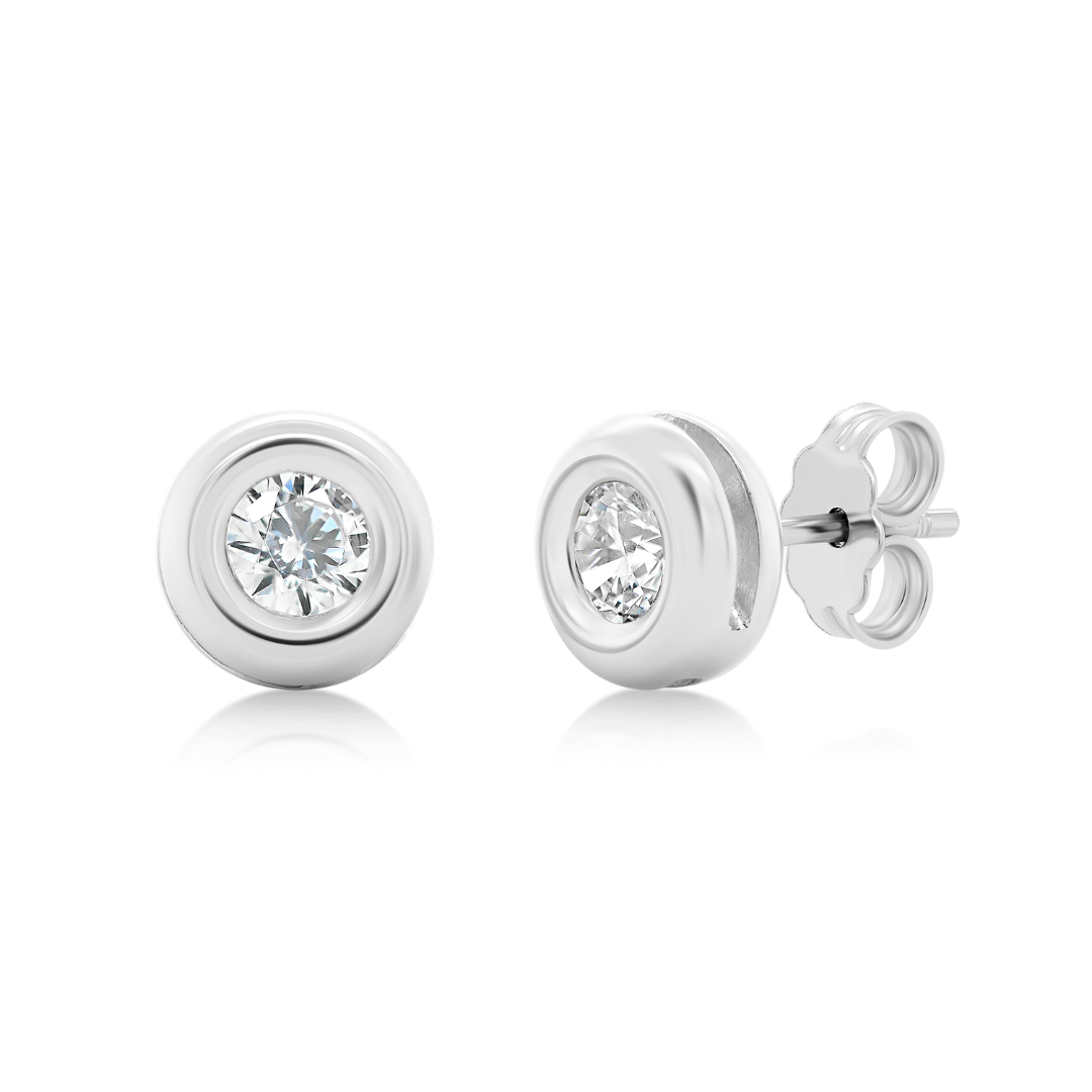 Cercei din aur alb de 14K cu pietre cubic zirconia.