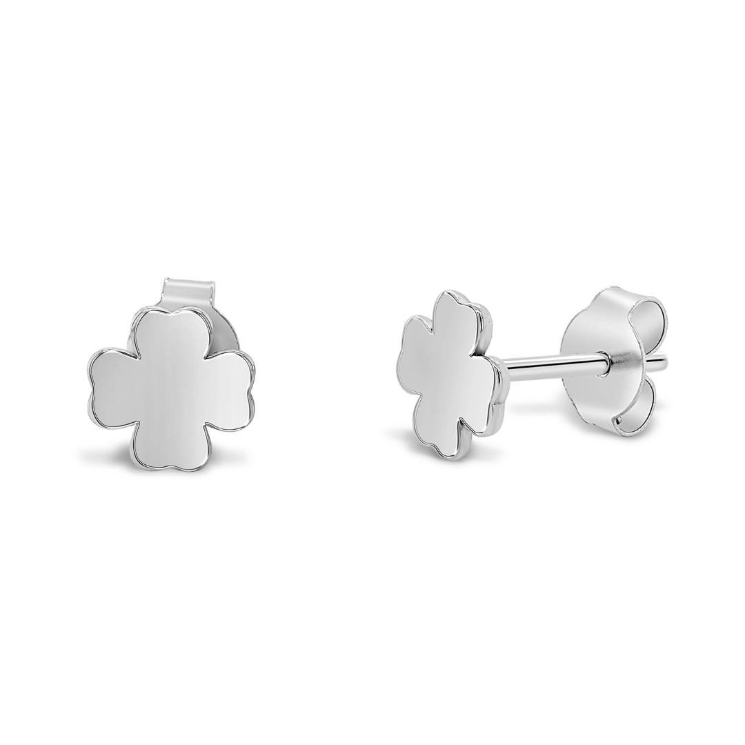 Cercei trifoi cu patru foi din aur alb de 14K.