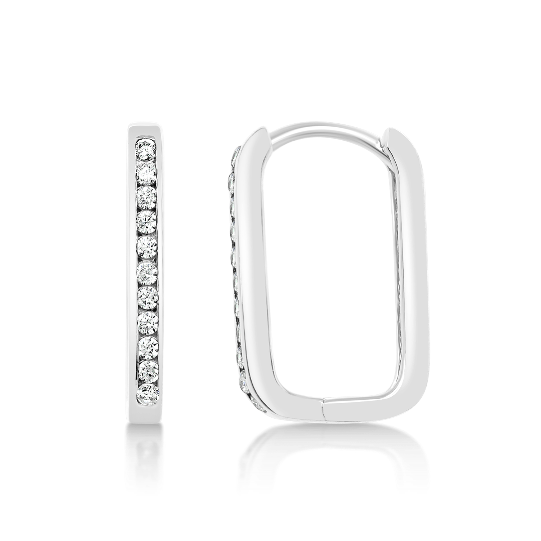 Cercei din aur alb de 14K cu pietre cubic zirconia.