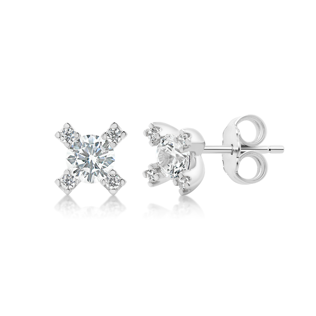 Cercei din aur alb de 14K cu pietre cubic zirconia.
