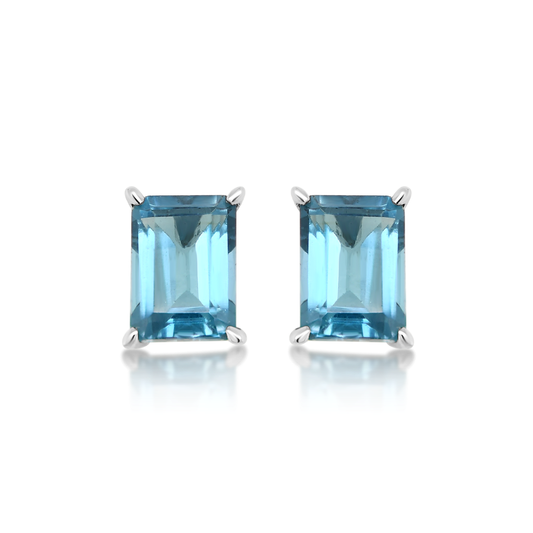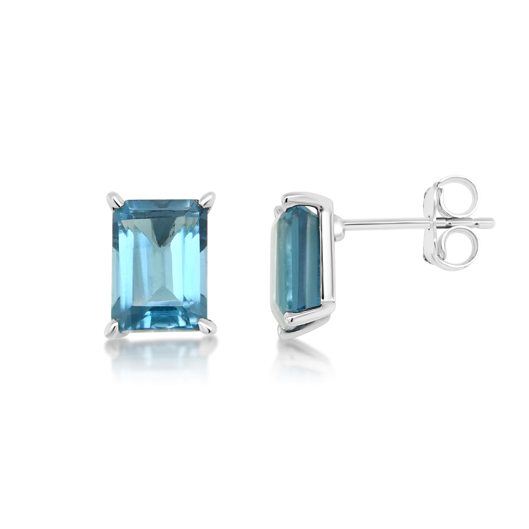 Cercei din aur alb de 14K cu London Blue Topaz