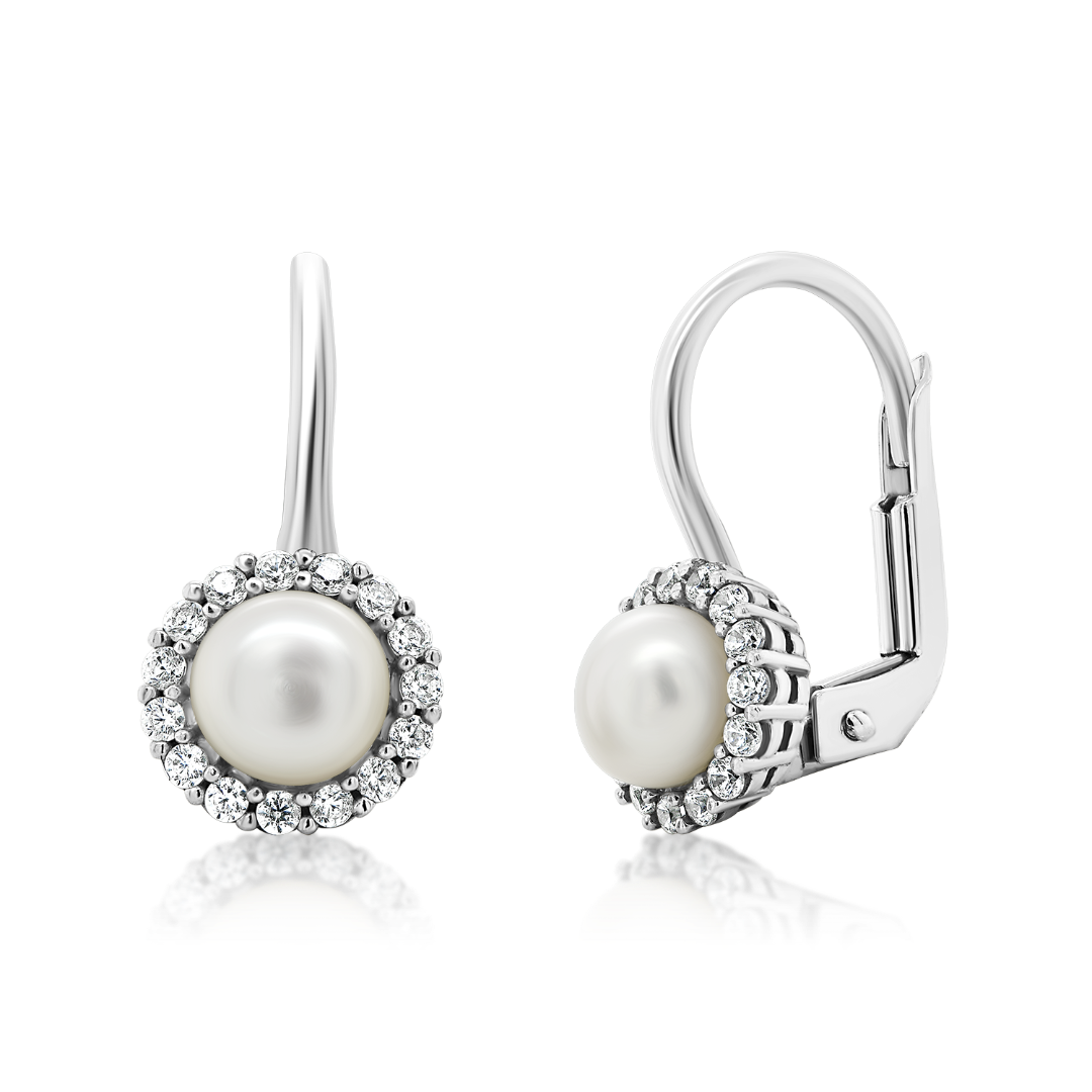 Cercei din aur alb de 14K, cu Perle de cultură și pietre Cubic Zirconia.