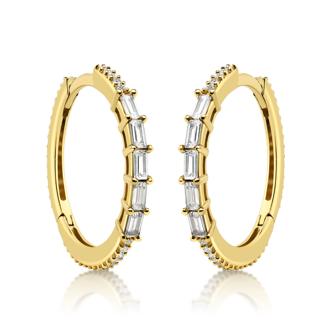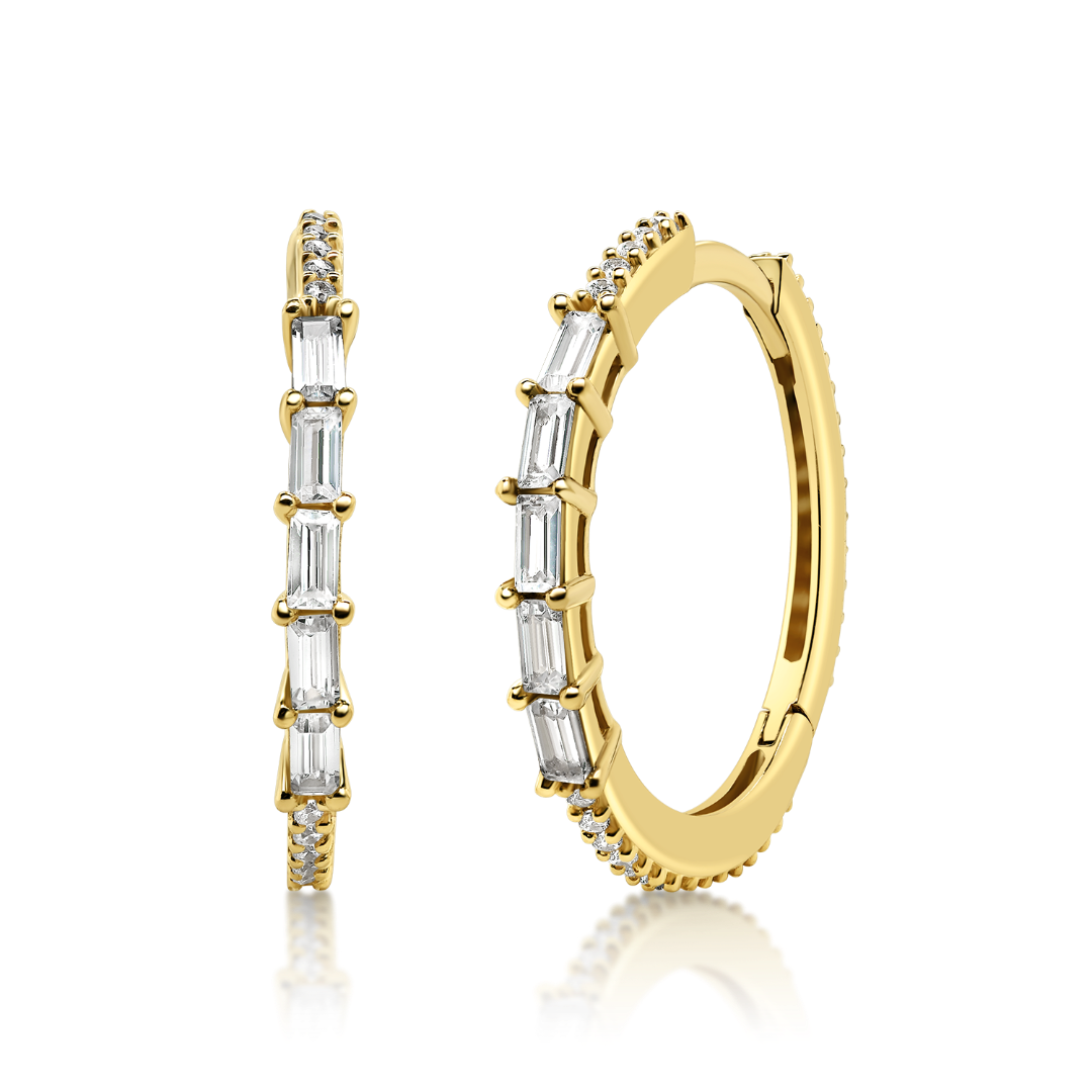 Cercei din aur galben de 14K cu pietre Cubic Zirconia albe.