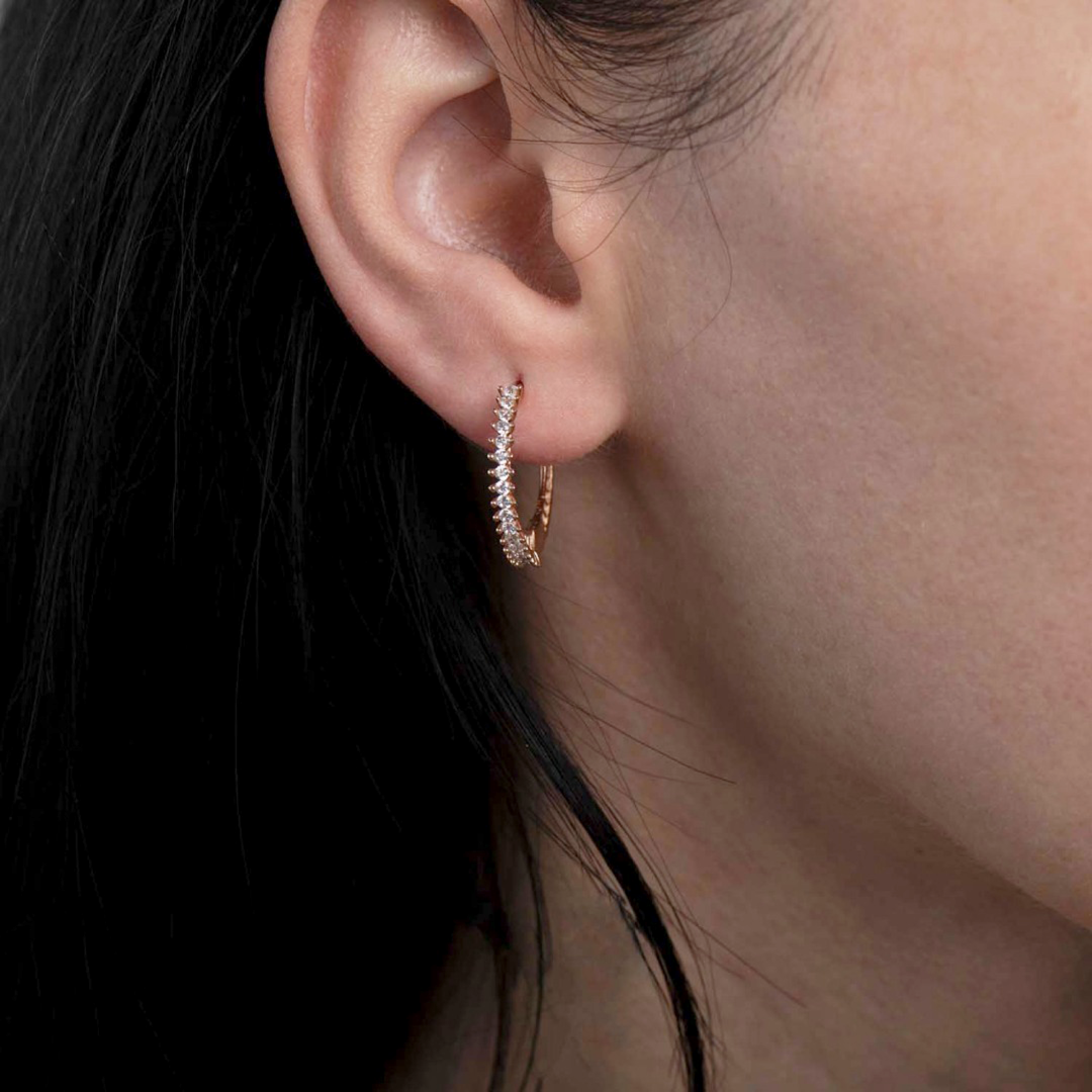 Cercei din aur galben de 14K cu pietre cubic zirconia.