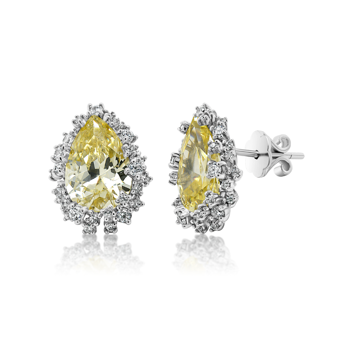 Cercei din aur alb de 14K, cu pietre Carneol Galben și Cubic Zirconia albe.