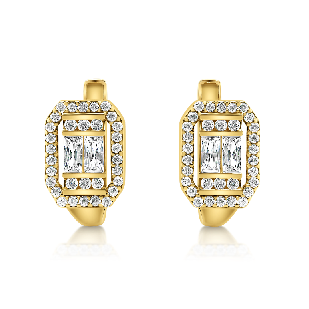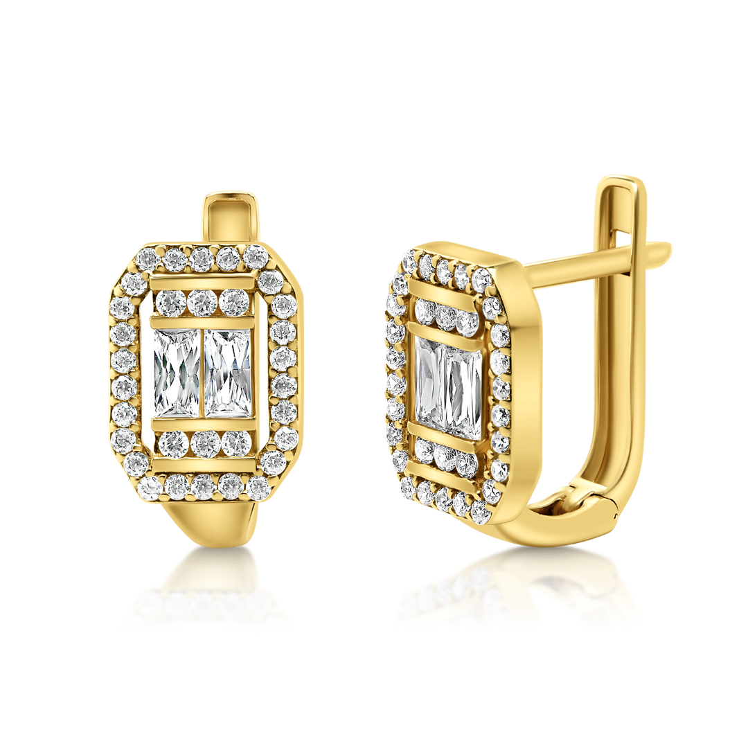 Cercei din aur galben de 14K cu pietre Cubic Zirconia albe.