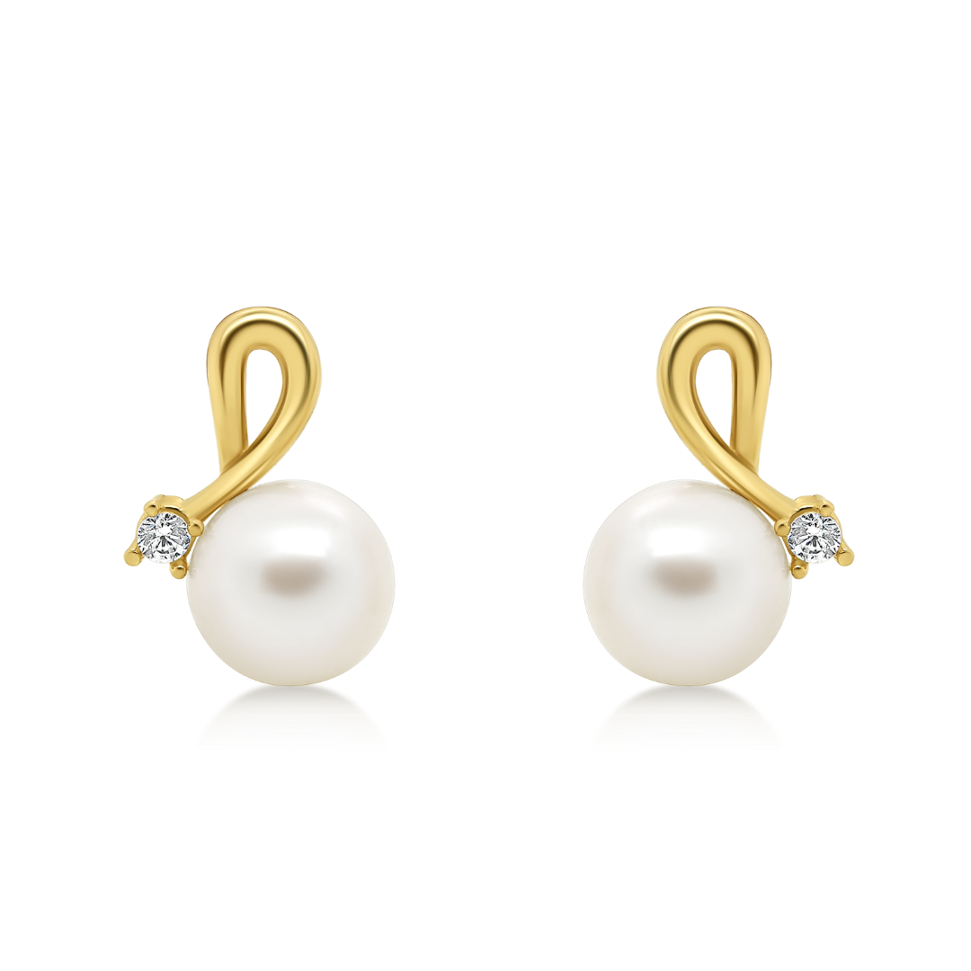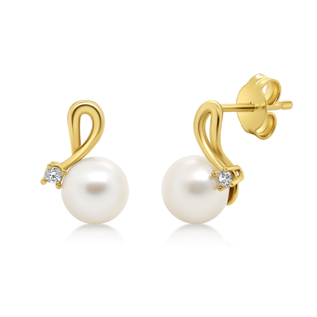 Cercei din aur galben de 14K, cu Perle de cultură și pietre cubic zirconia.