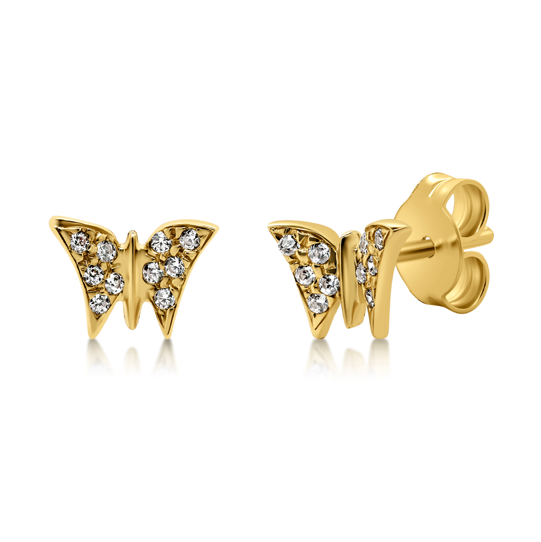 Cercei în formă de fluture din aur galben de 14K cu pietre cubic zirconia.