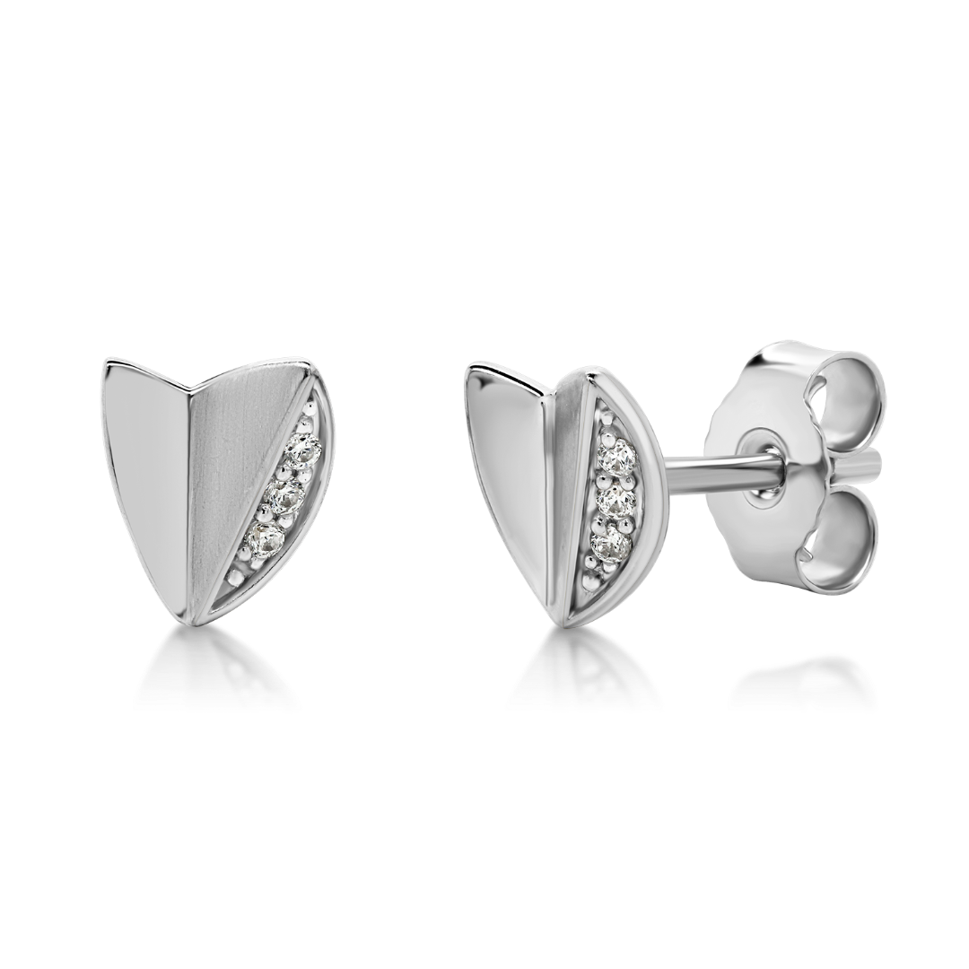 Cercei din aur alb de 14K, cu elemente mate și pietre cubic zirconia.