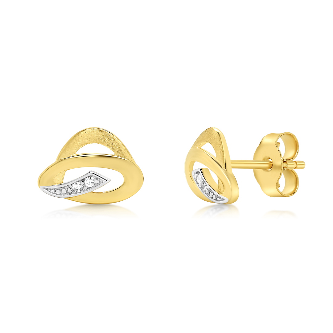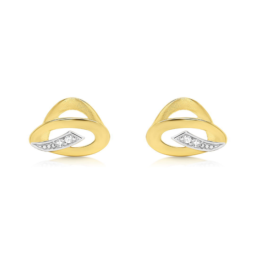 Cercei din aur galben de 14K, cu Rodiu alb și pietre Cubic Zirconia.