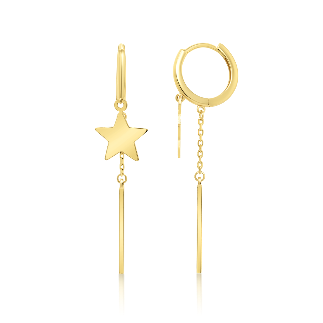 Cercei cu element în formă de stea din aur galben de 14K.