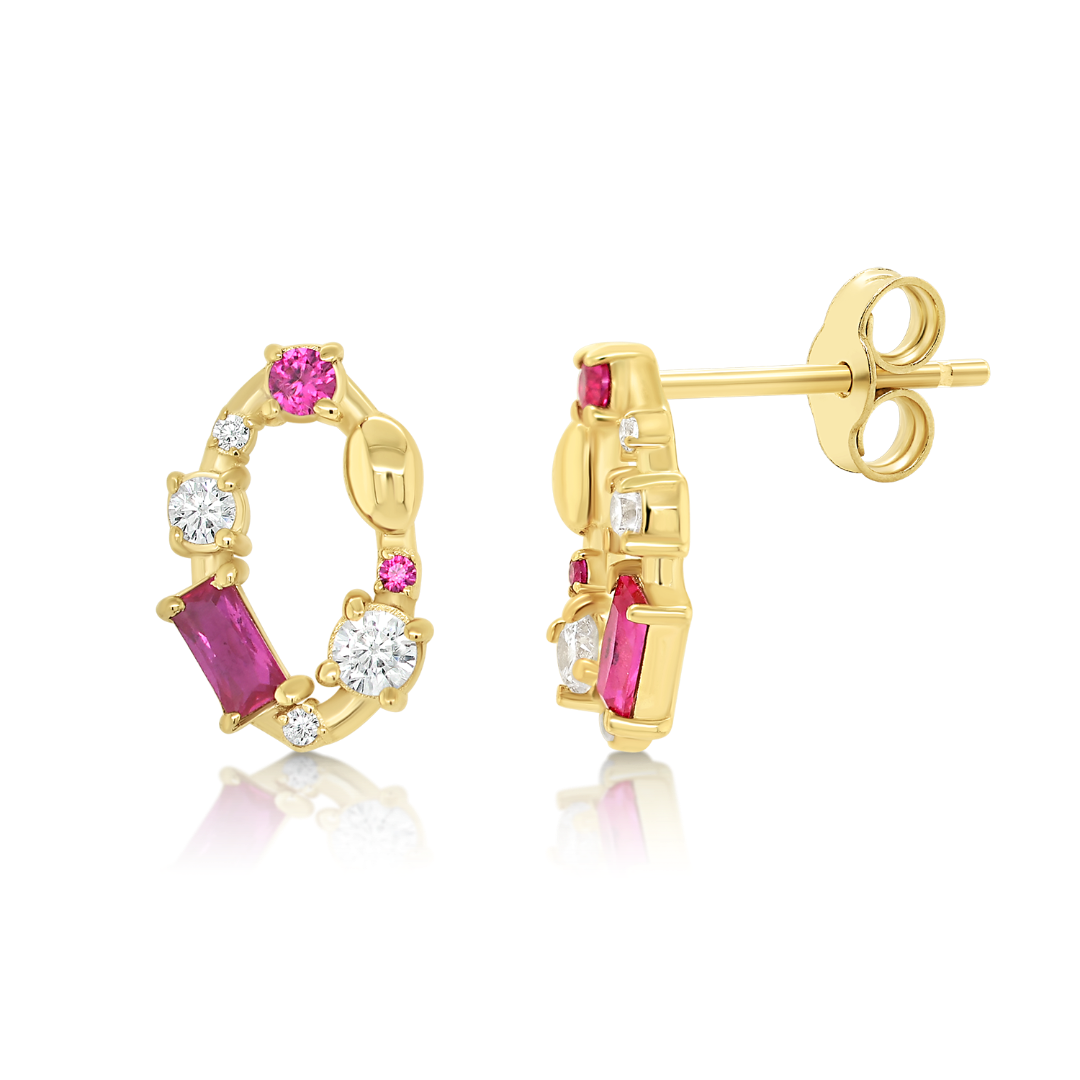 Cercei din aur galben de 14K cu pietre Cubic Zirconia.